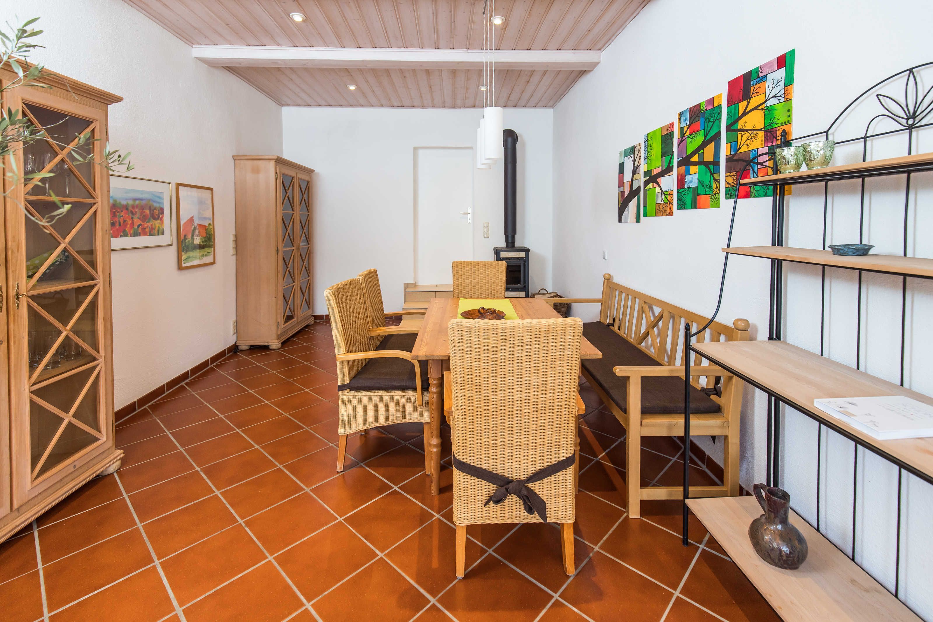 Im Wohn- und Esszimmer der FeWo Apfelblüte kann zusätzlich ein Schwedenofen angeheizt werden, Holz zum Heizen ist vorhanden.
