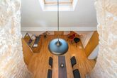 Im besonderen, großzügigen Wohn- und Essbereich auf zwei Ebenen und Galerie finden Sie ein ein gemütliches Sofa und TV, einen Esstisch für 4 Personen und eine Leseecke. Parkettboden sorgt für Gemütlichkkeit und ein rundum wohlfühlen.