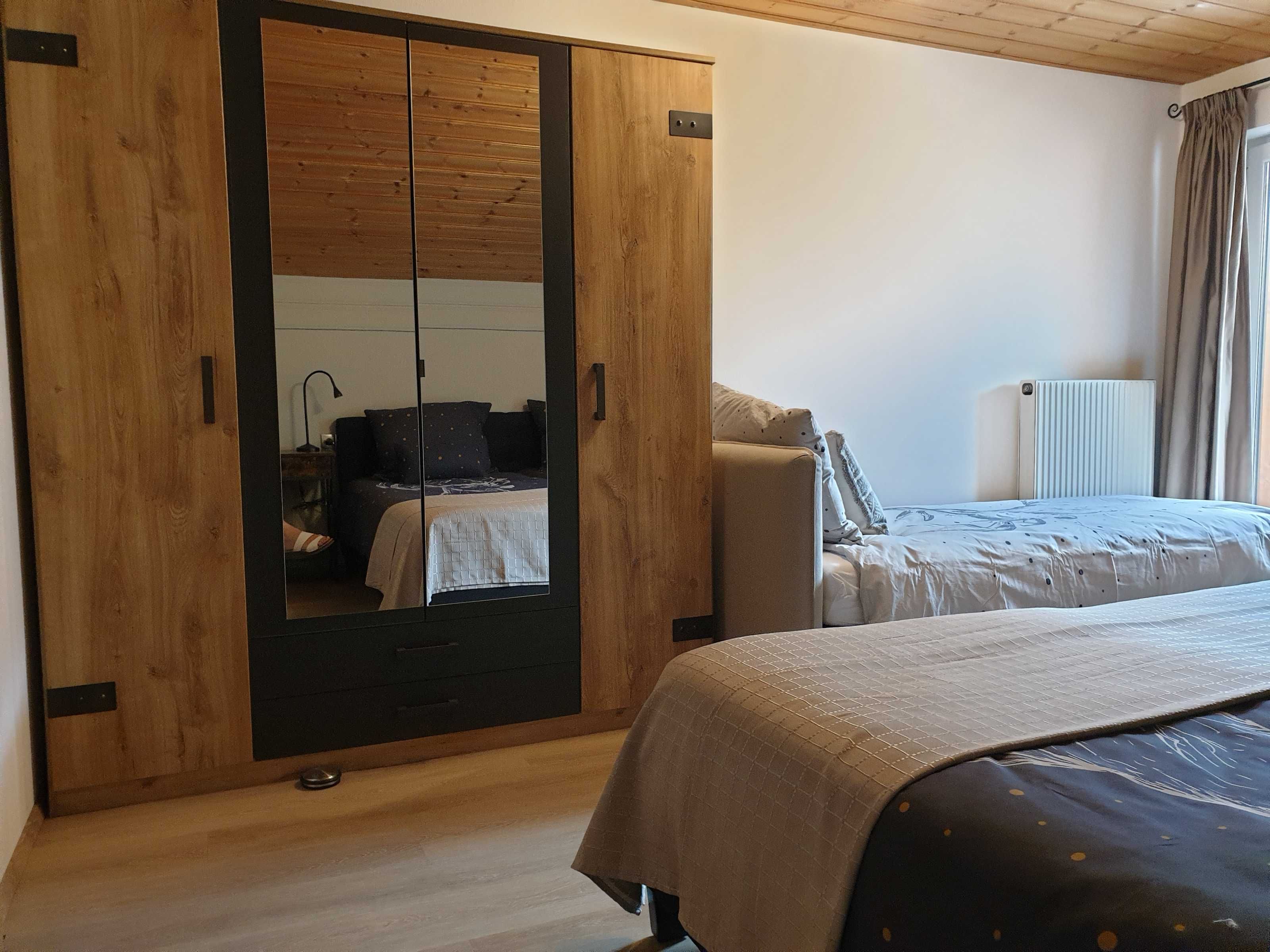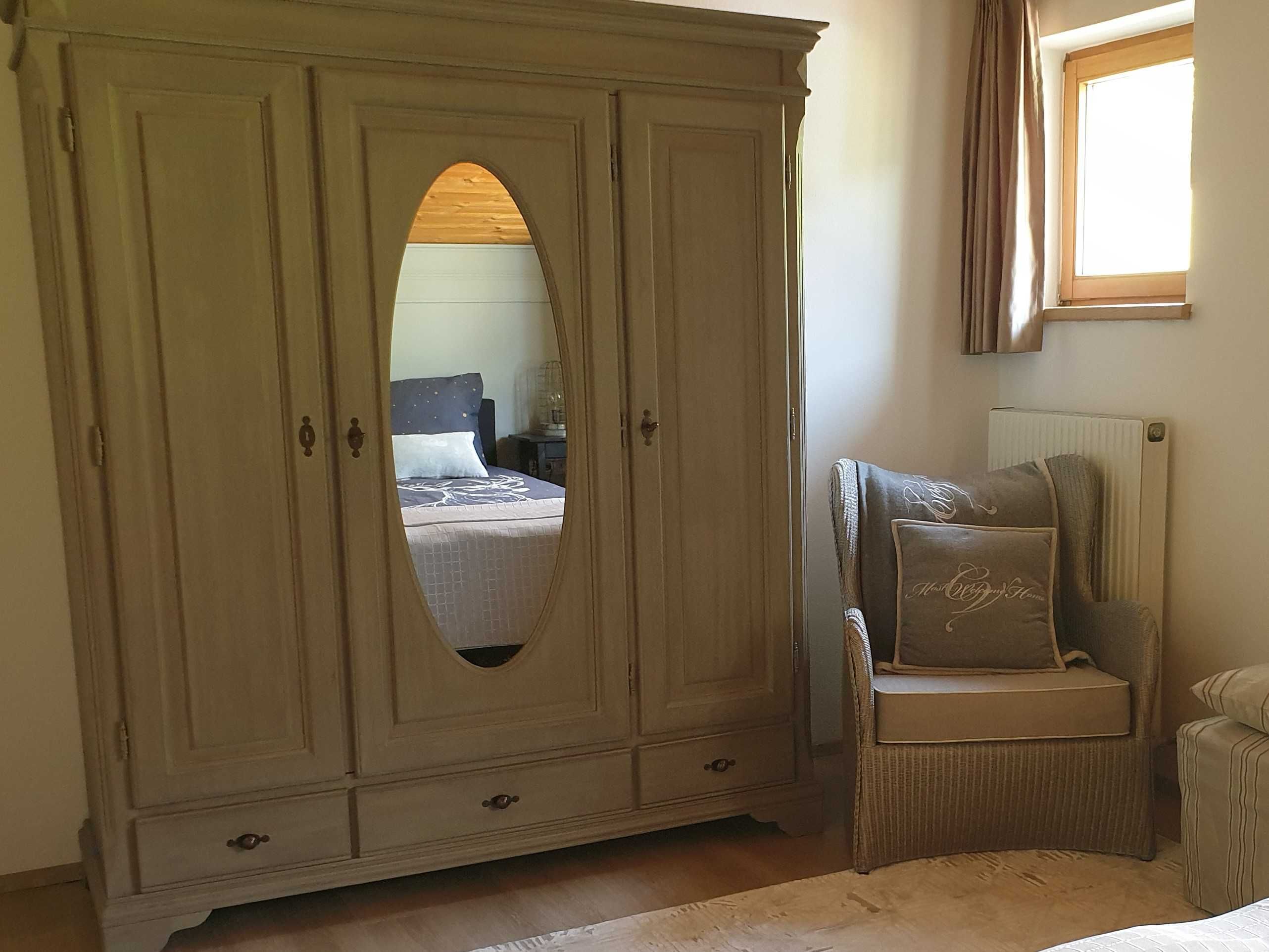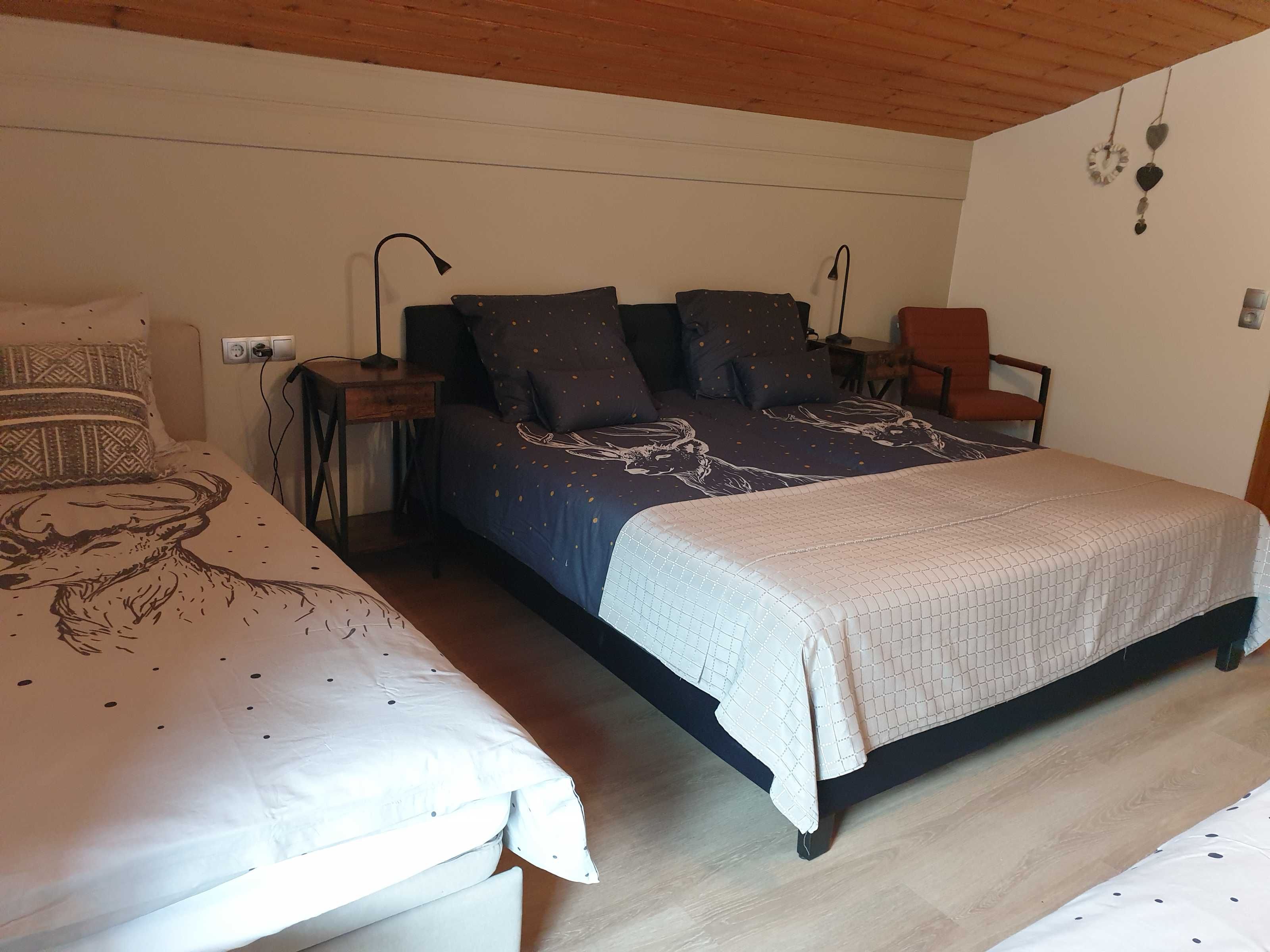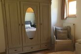 Doppelzimmer-# 2 : Doppelbett ( 180 x 200 ), Kleiderschrank und Sessel. Steckdose in Bettnähe.
