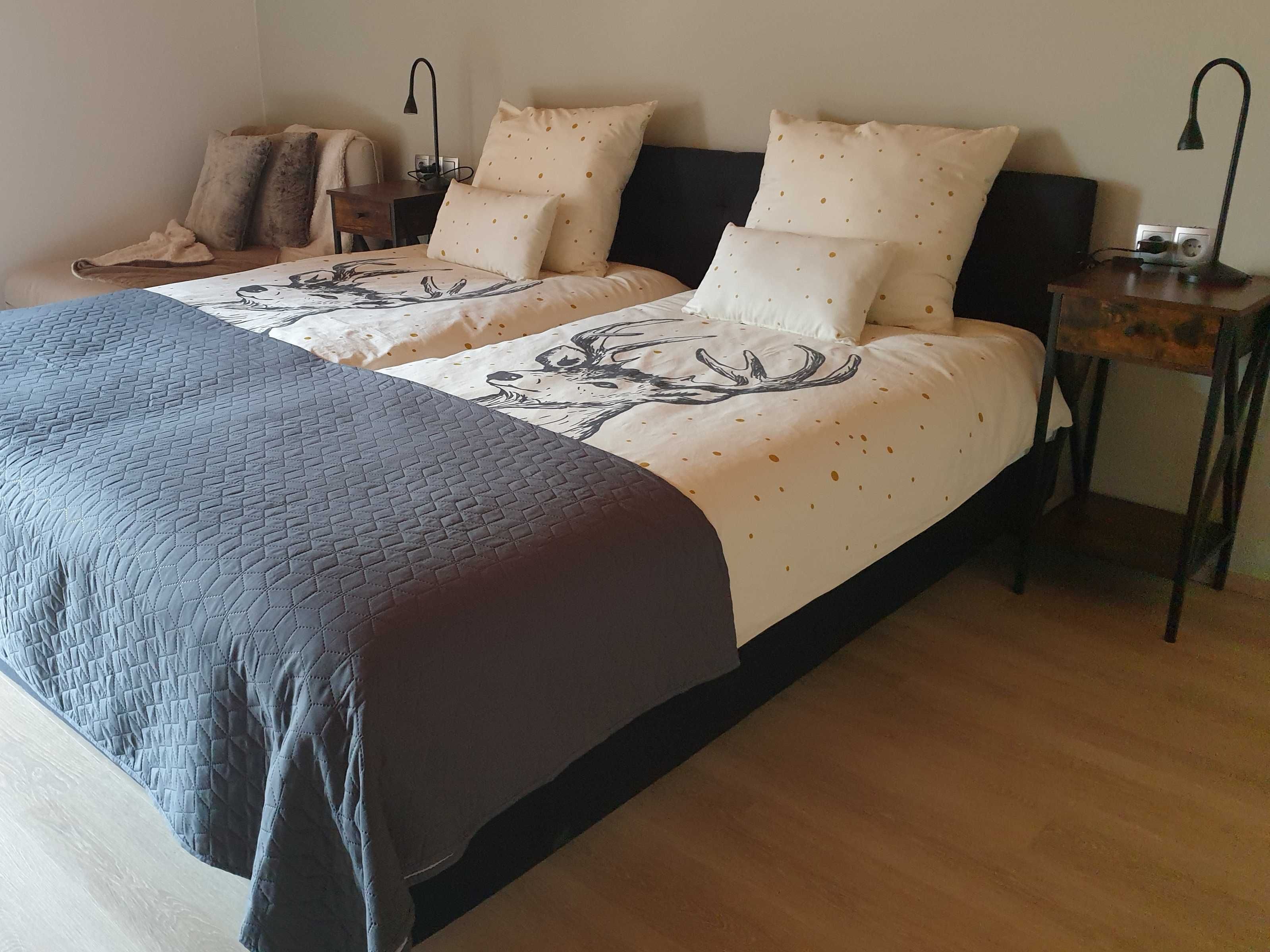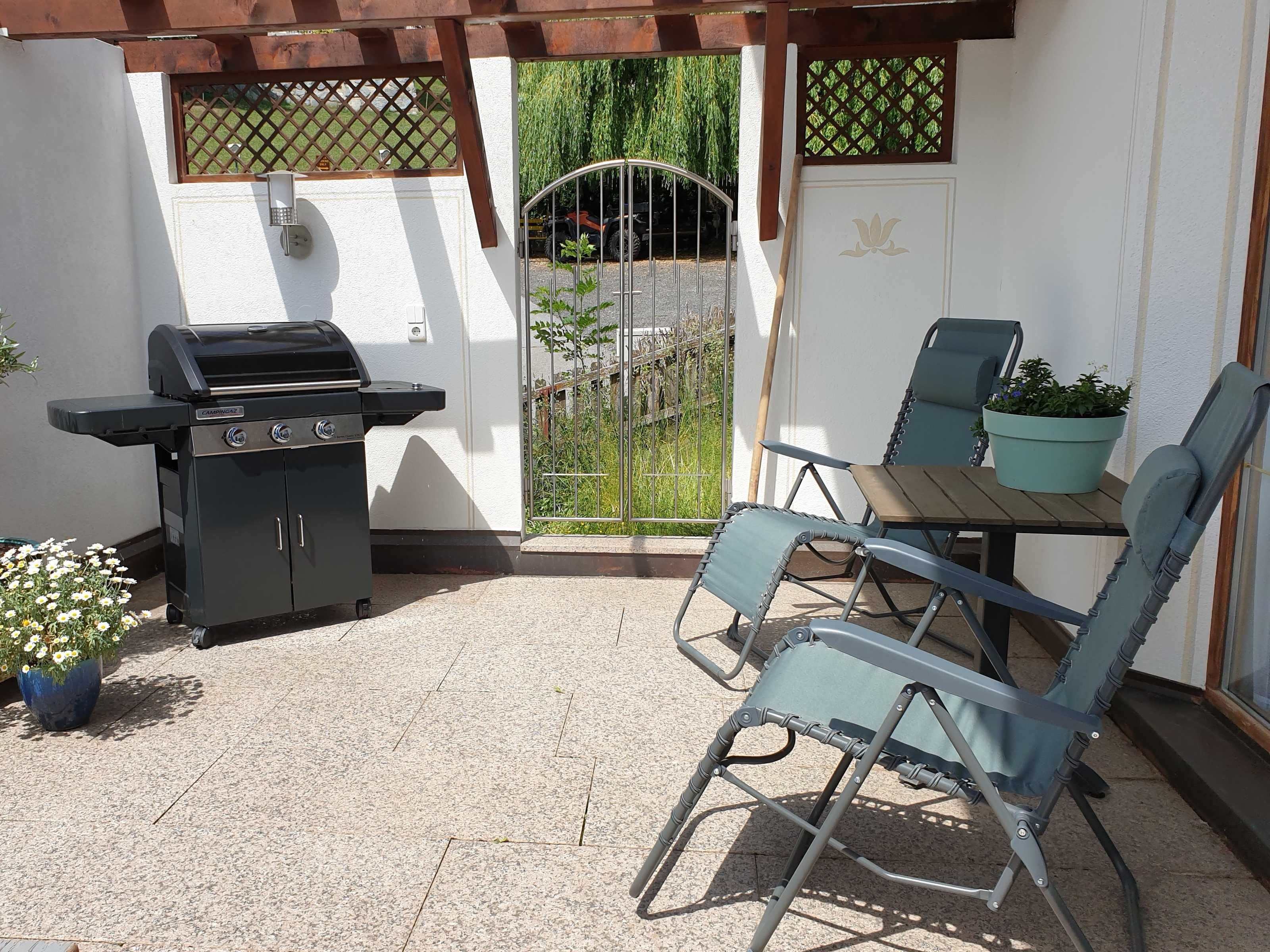 Ferienwohnung EDELWEISS, im Erdgeschoss verfügt über ein geräumige persönlich eingerichtete Wohnküche, mit gemütlichen Eckgruppe und Smart TV, ein grosses Schlafzimmer mit einer schöner Sitzecke und einem kleinen Badezimmer. Im hinteren Teil des grossen, breiten Flurs eine separate Ecke mit Etagenbett. Auch hier eine grosse private Terrasse mit Gasgrill im Garten. Dieser Ferienwohnng ist besonders geeignet für zwei Erwachsene oder eine Familie mit jüngeren Kinder.