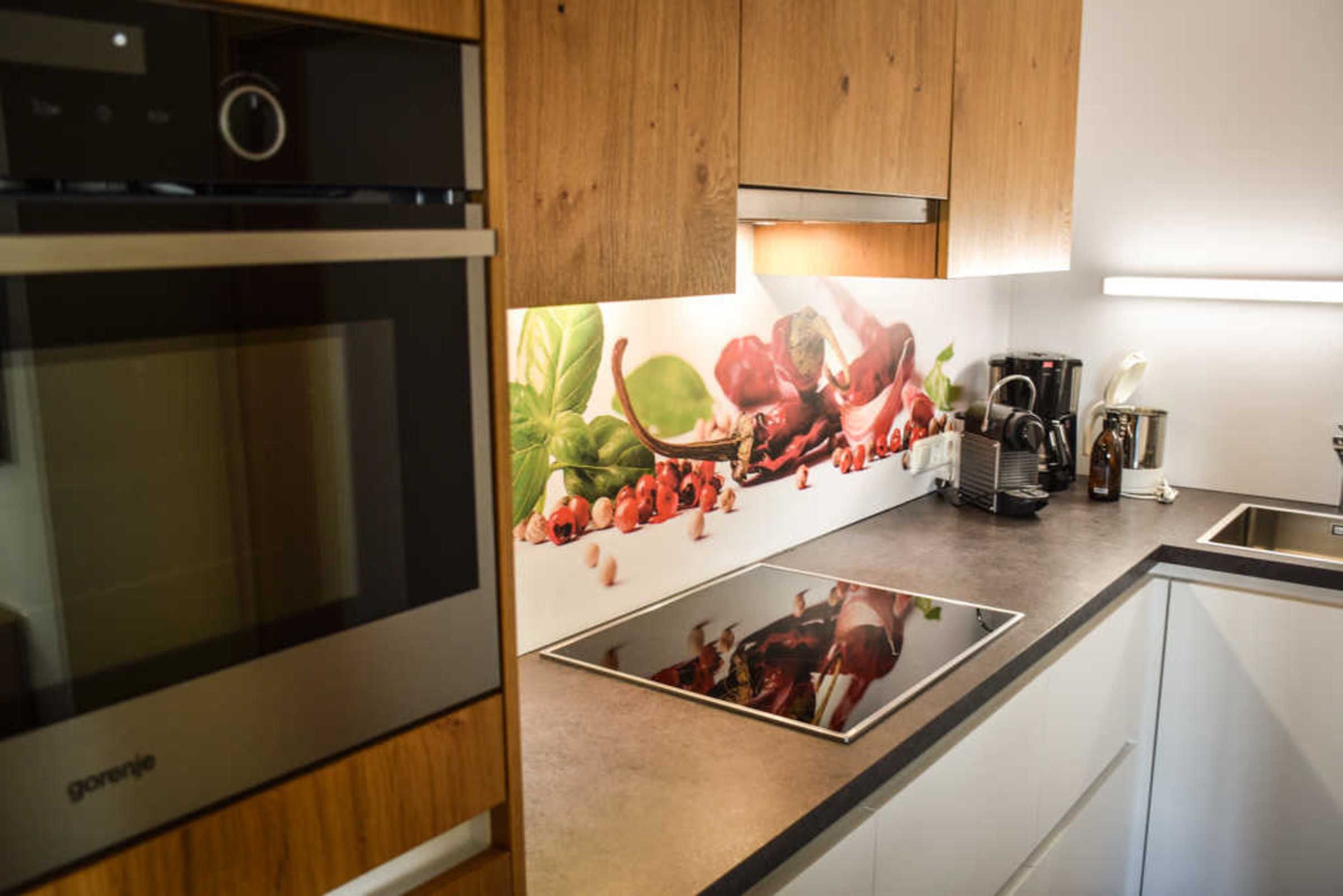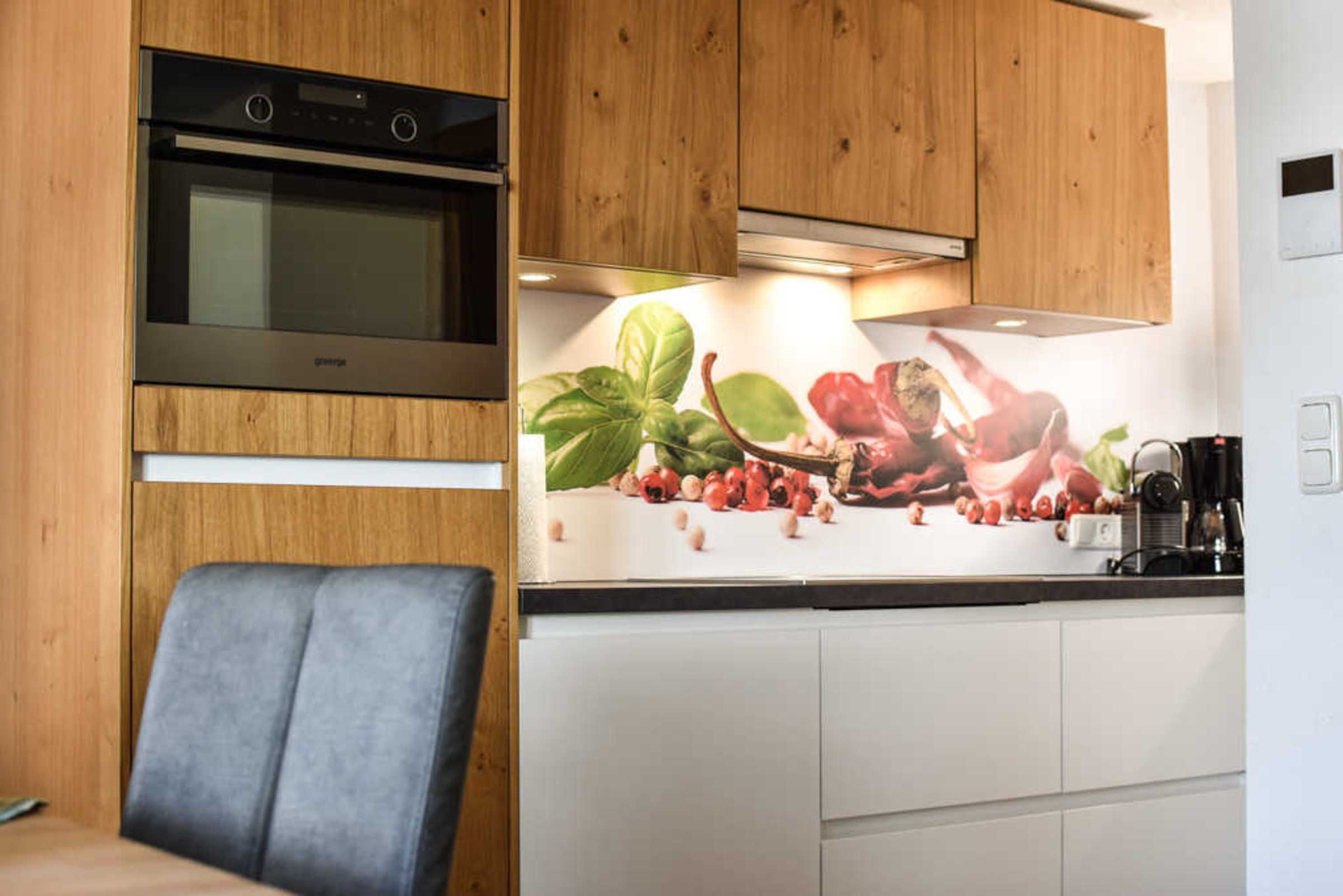 Die Wohnküche ist komplett ausgestattet mit Spülmaschine, Backofen/Mikrowelle, Induktionskochfeld, Kühlschrank mit Tiefkühlfach, Spülmaschine, Toaster, Nespresso-Kaffeemaschine, Filterkaffeemaschine, Wasserkocher, SAT-TV sowie einen Safe für die Wertsachen.