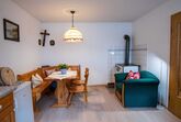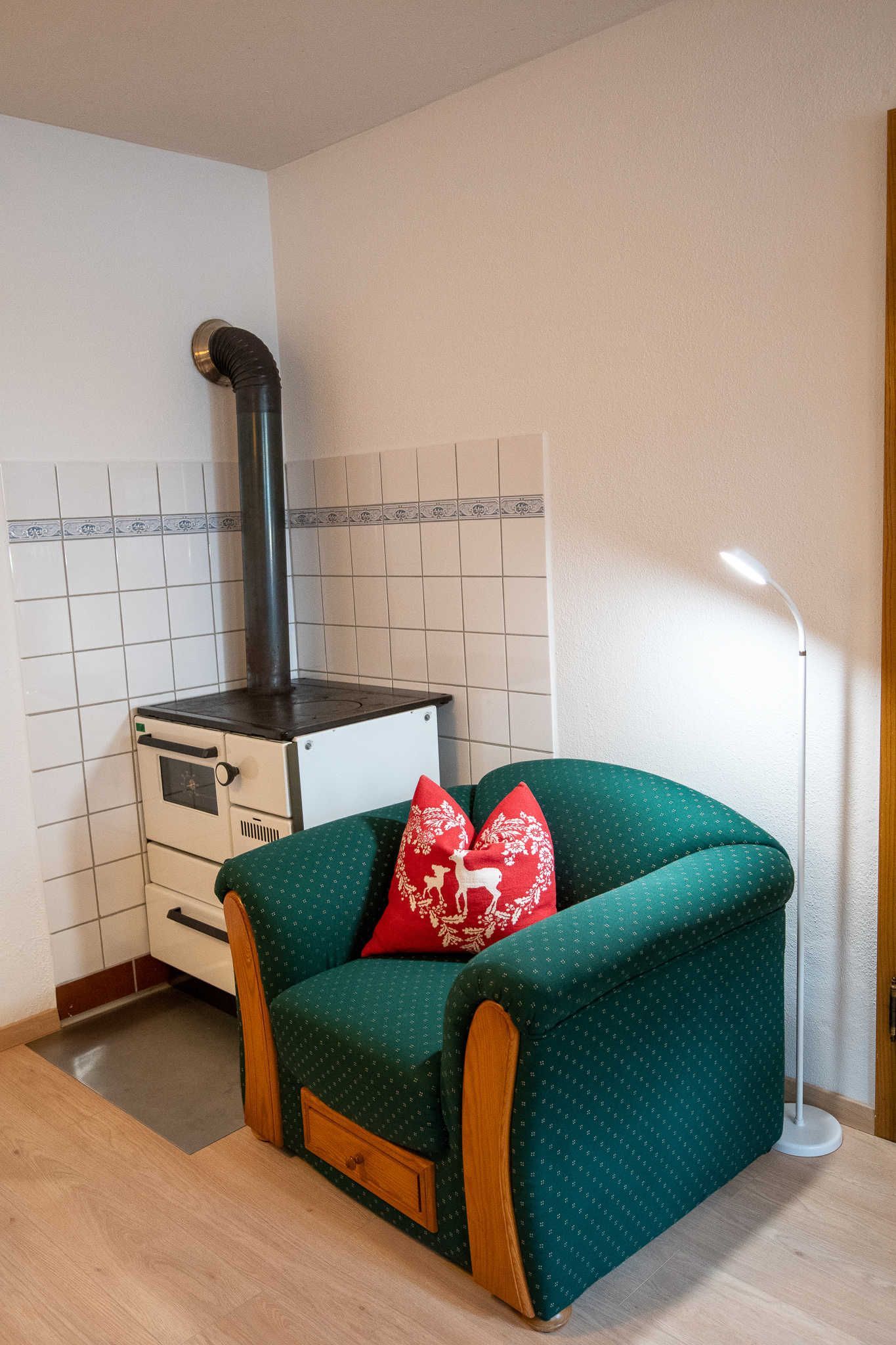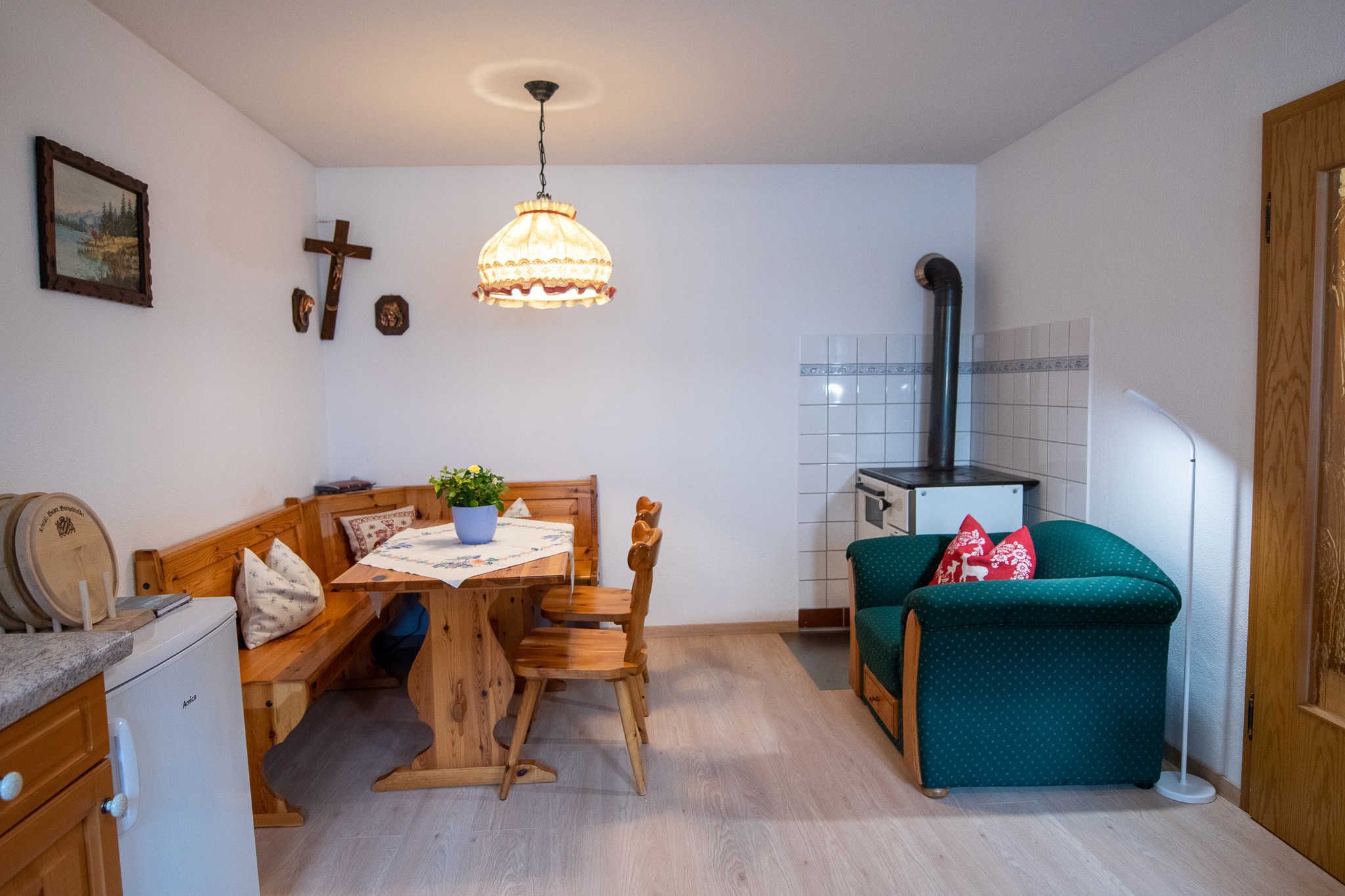 In der Wohnküche kann zusätzlich auch gerne der Holzofen befeuert werden.