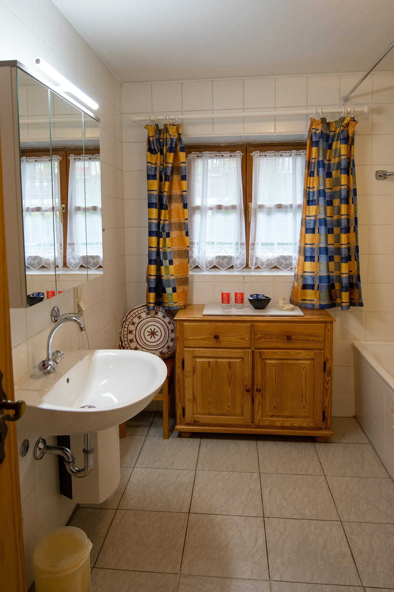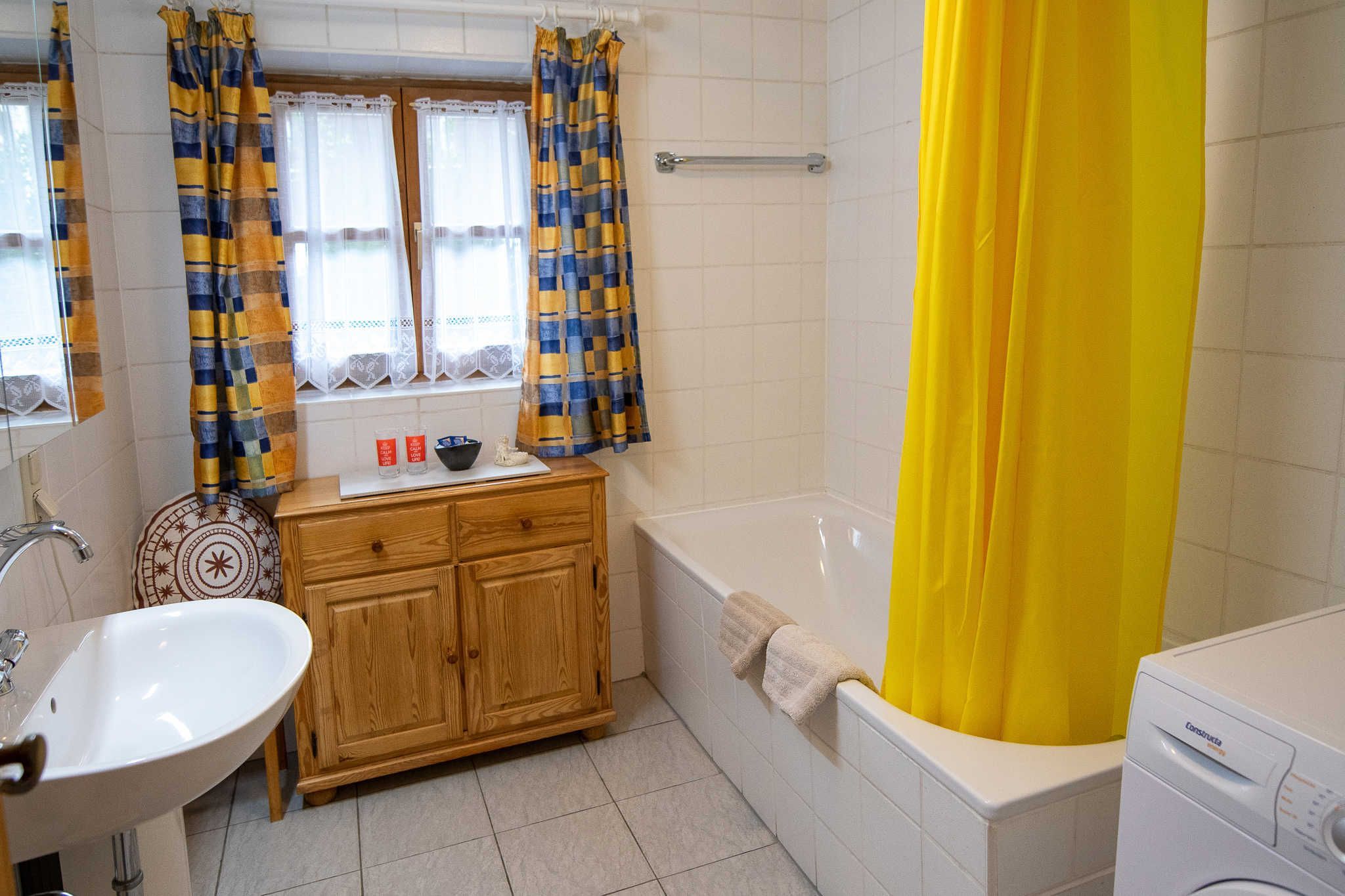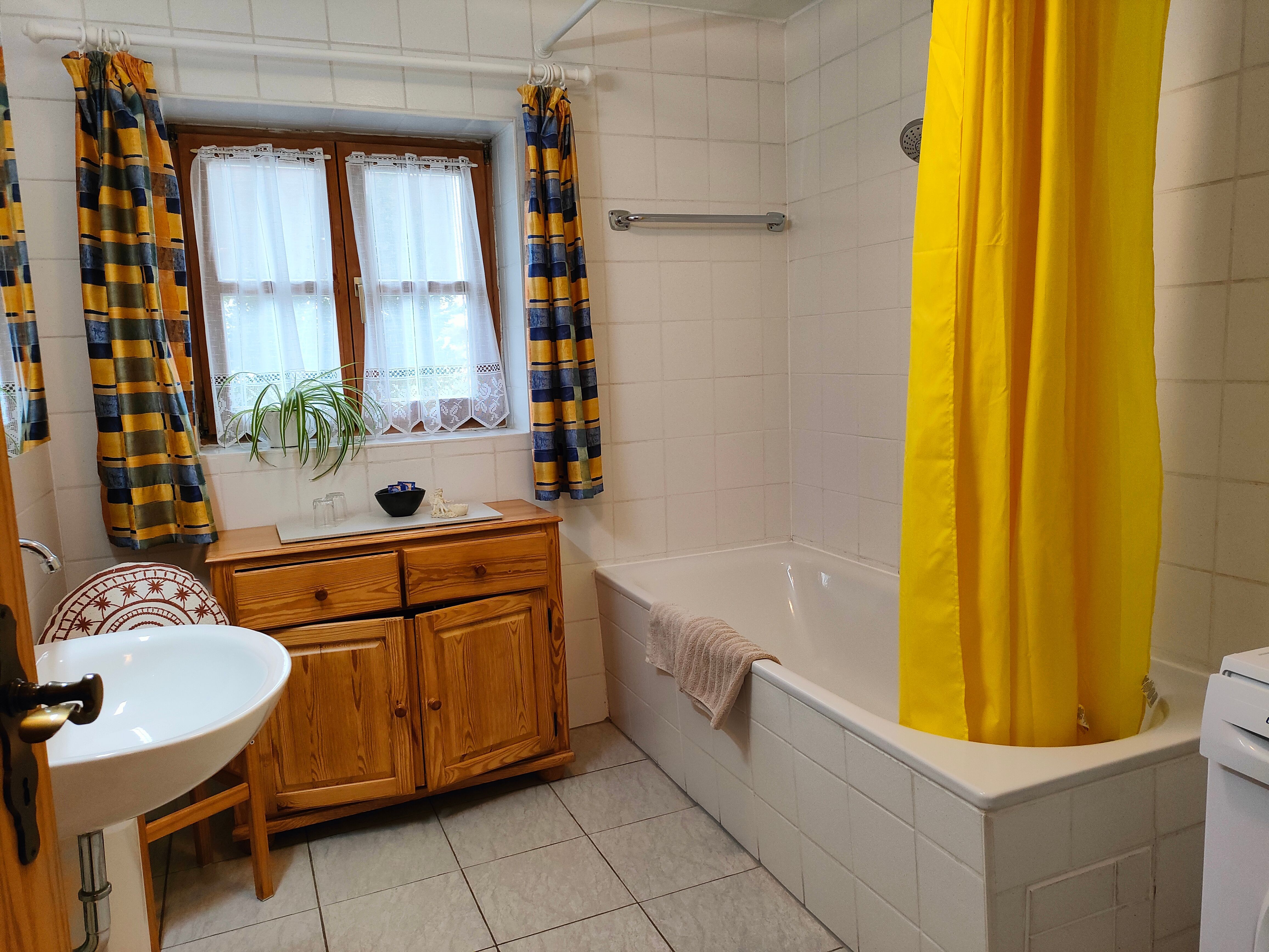 Unser ruhiges Feriendomizil hat eine Wohnküche, Schlafzimmer, Bad mit Wanne und ein