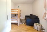 Das moderne Badezimmer beinhaltet Dusche, Waschbecken und Handtuchheizkörper das WC ist extra. Das 1. Schlafzimmer bietet Ihnen ein bequemes Doppelbett und einen geräumigen Kleiderschrank, das 2. Schlafzimmer ist mit einem Stockbett, Schrank sowie einem Sofa ausgestattet.