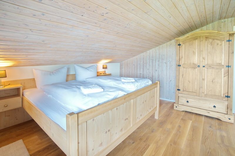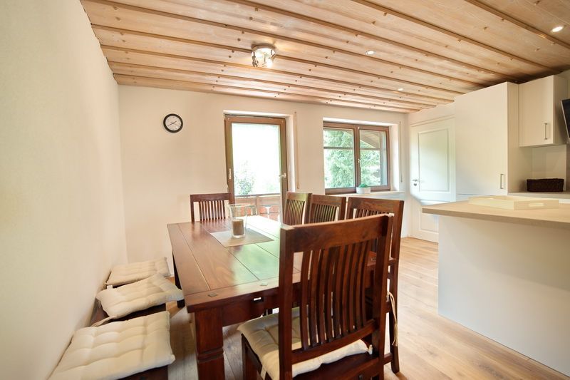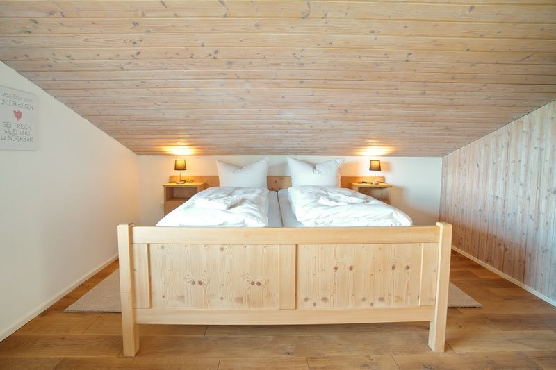 Die Ferienwohnung Stuiben ist perfekt für den Urlaub mit Oma und Opa oder Freunden. Die drei Schlafzimmer verfügen über ein Doppelbett mit Kleiderschrank und das vierte über ein französisches Bett, wobei das größte Schlafzimmer einen TV sowie einen Zugang zum Nordbalkon bietet. In der modernen Küche finden alle Platz an einer gemütlichen Esstisch an dieser auch ein Hochstuhl genügend Platz findet. Vom Wohnzimmer mit TV kommen Sie direkt auf den großen Südbalkon mit Blick in die Berge und die Natur. Das Badezimmer mit einer großen Badewanne und einer Dusche lässt keine Wünsche offen.