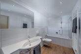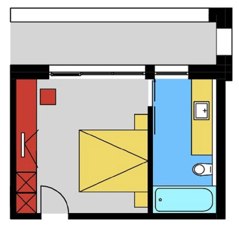 1 Schlafzimmer mit Doppelbett, Badezimmer mit Badewanne oder Dusche, teilweise mit Balkon - nach Norden gerichtet, Betten für 1. und 2. Person auch trennbar. Besondere Eignung auch für Singles mit Kind. Größe ca. 20 m²