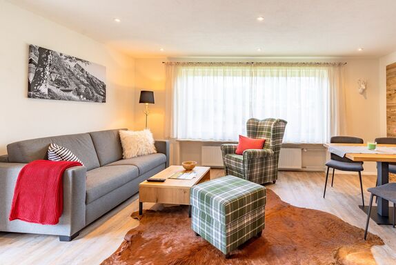 Vom Wohnzimmer und vom Schlafzimmer aus gelangen Sie auf den großzügigen Balkon (Balkonmöbel und Sonnenliegen stehen für Sie parat). Hier können Sie die tolle Aussicht in die Allgäuer Bergwelt genießen und den Tag bei einem Glas Wein gemütlich ausklingen lassen.