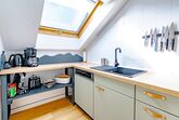 Das liebevoll gestaltete Apartment befindet sich im Dachgeschoss eines Mehrfamilienhauses.