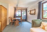 Der helle Wohnraum mit anschließender Küche und dem schönen Balkon mit dem tollen Bergblick bieten Ihnen Platz zur Entspannung. Bei einem Glas Wein können Sie hier den Tag wunderbar ausklingen lassen. Das Schlafzimmer ist mit einem Doppelbett ausgestattet. Im Bad finden Sie eine Dusche, WC und einen Föhn vor.