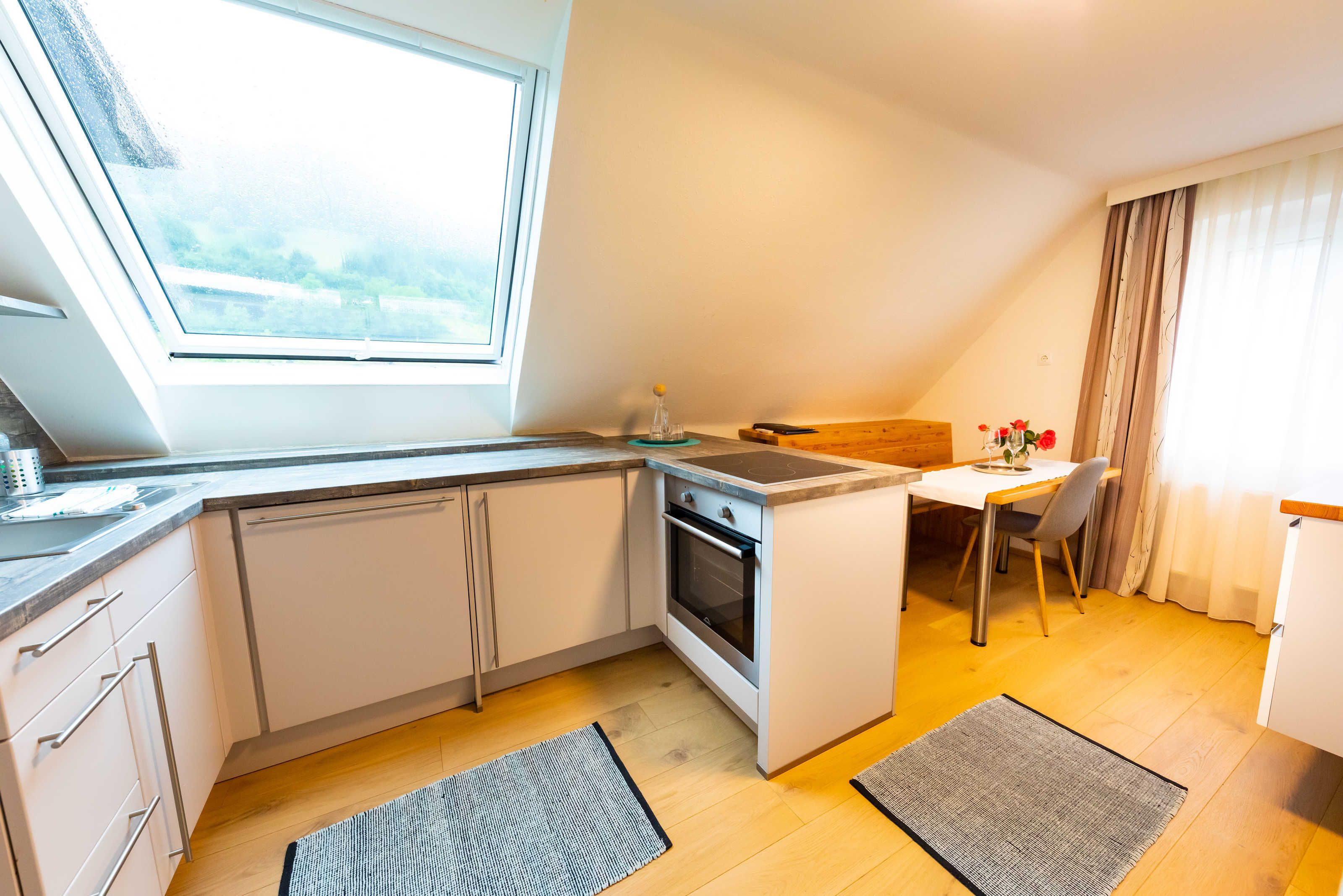 Alle unsere Apartments sind mit einer vollständig eingerichteten Küche (inkl. Geschirr), TV, W-LAN, Safe und Föhn ausgestattet. Im selben Gebäude befindet sich ein Haushaltsraum (Waschmaschine, Wäschetrockner, Wäscheständer), der gerne genutzt werden kann. Die Fitnessraum- und Saunanutzung in der nahe gelegenen Genuss-Pension Herti ist im Apartmentpreis mitinbegriffen. Pro Apartment steht ein Parkplatz kostenlos zur Verfügung.