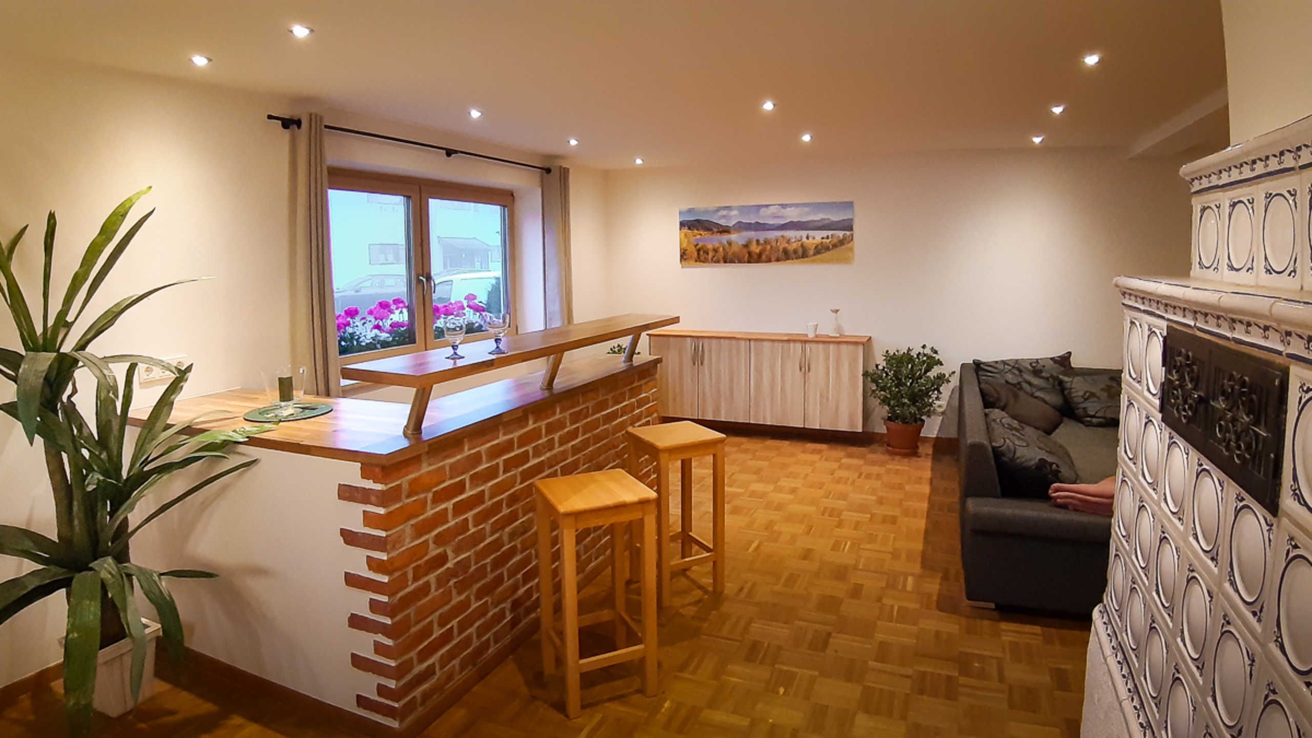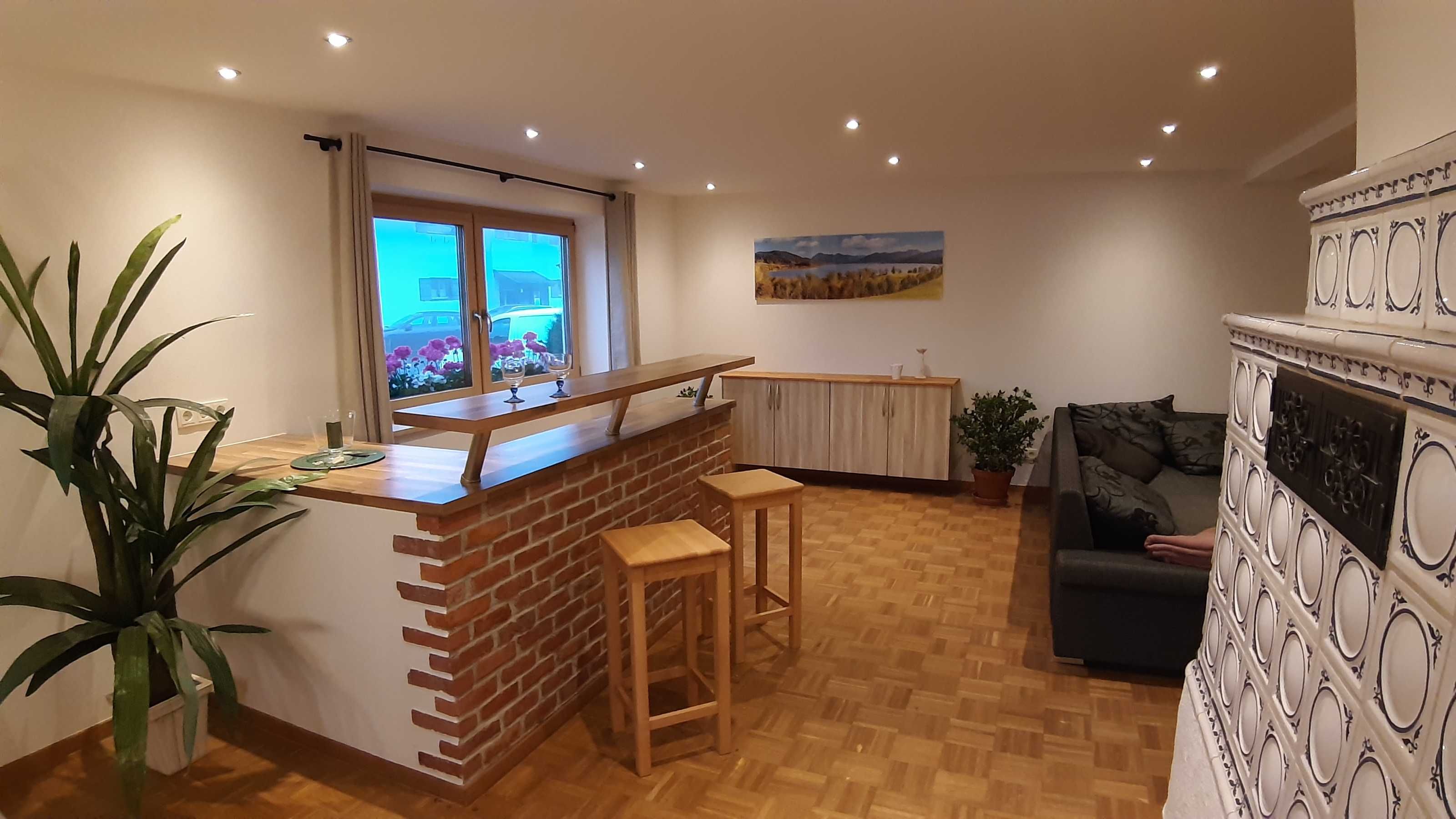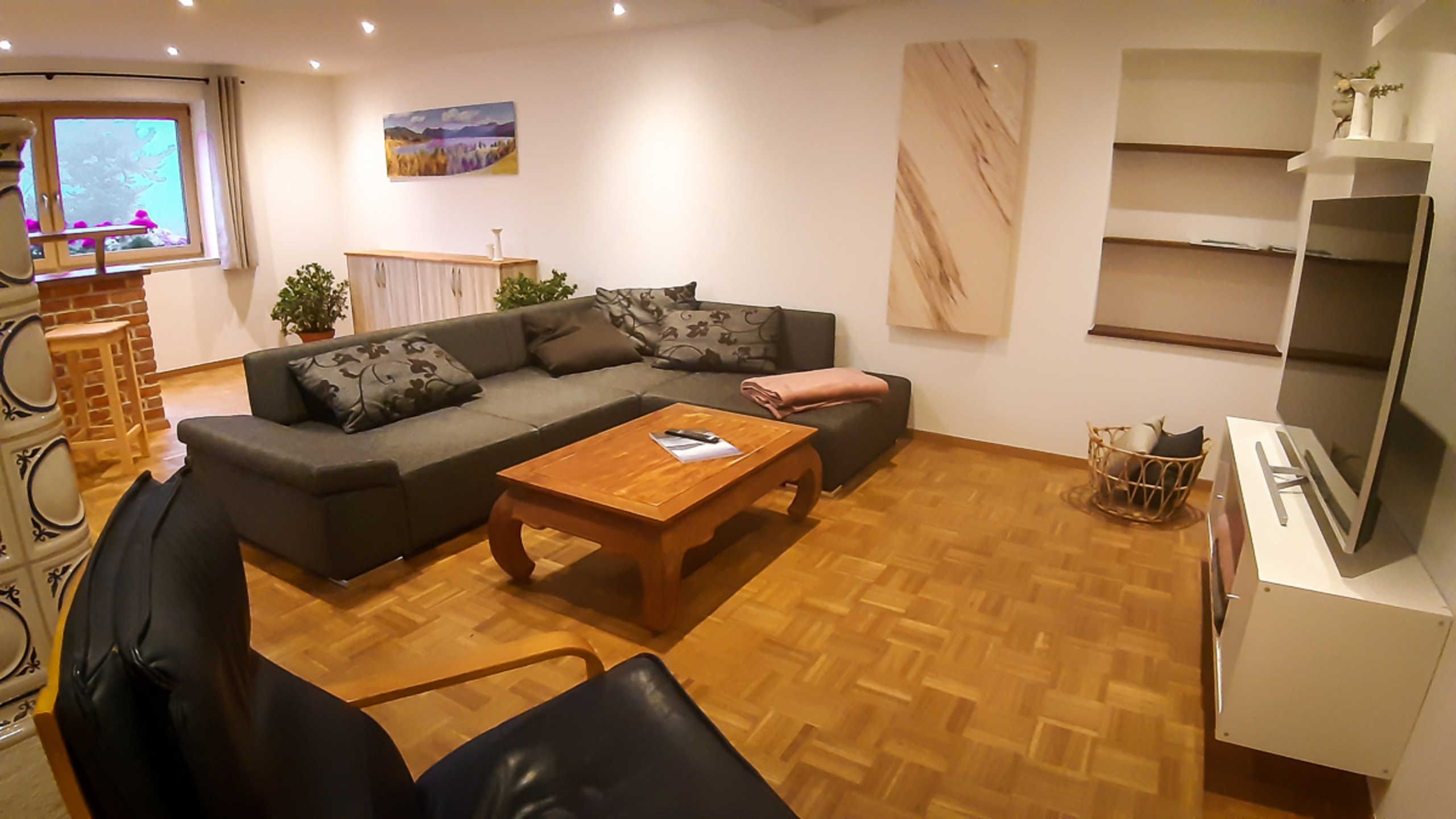 Unsere Ferienwohnung „Holzeralmblick“ ist im Erdgeschoss eines Mehrfamilienhauses sehr ruhig in Seenähe gelegen. Sie verfügt neben Küche, Bad und Wohnraum über ein Doppelbett- und zwei Einzelbettzimmer und ist insgesamt großzügig und komfortabel eingerichtet. Es handelt sich um eine Nichtraucherwohnung, die für Allergiker geeignet ist, da Haustiere verboten sind. Die Wohnung besitzt größtenteils Parkett-Fußböden und eine Terrasse Richtung Süden, auf der bis zum Mittag die Sonne scheint.