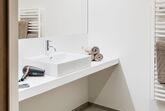 1 Badezimmer mit Dusche / WC, Handtücher, Föhn, Eingangsbereich mit Garderobe,
