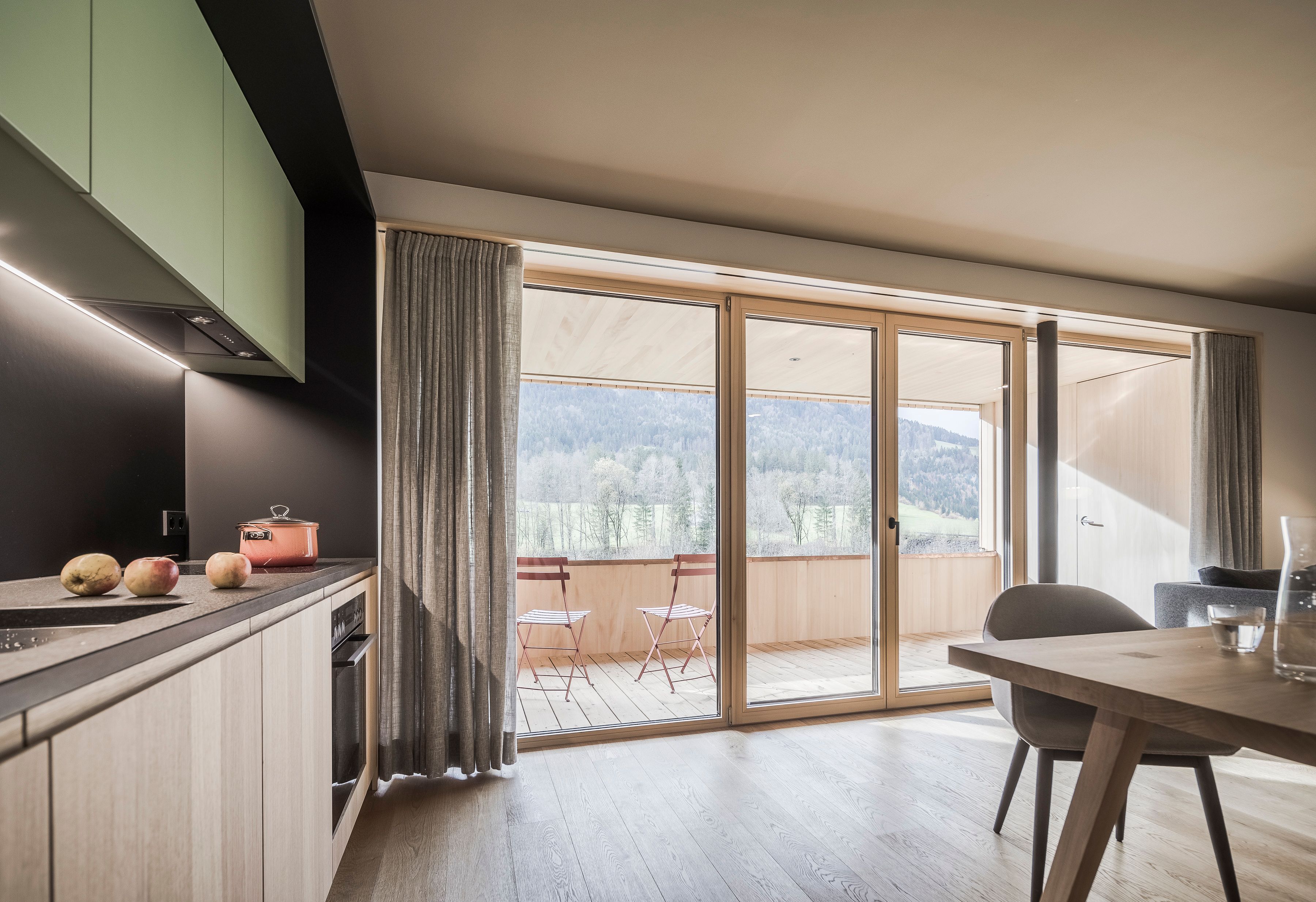 Schlicht, praktisch und hochwertig schön. Diese Vision haben wir mit ausgewählten Naturmaterialien mit den Handwerksbetrieben der Region realisiert. 7 Apartments am Fuße des Gopfberges haben ihre Türen geöffnet für Erholung und vielfältigste Sport- und Bewegungsmöglichkeiten. Allein der Blick auf die Ski- und Wandergebiete vor Ihrem Panoramafenster wird gleich neue Energien freisetzen.
