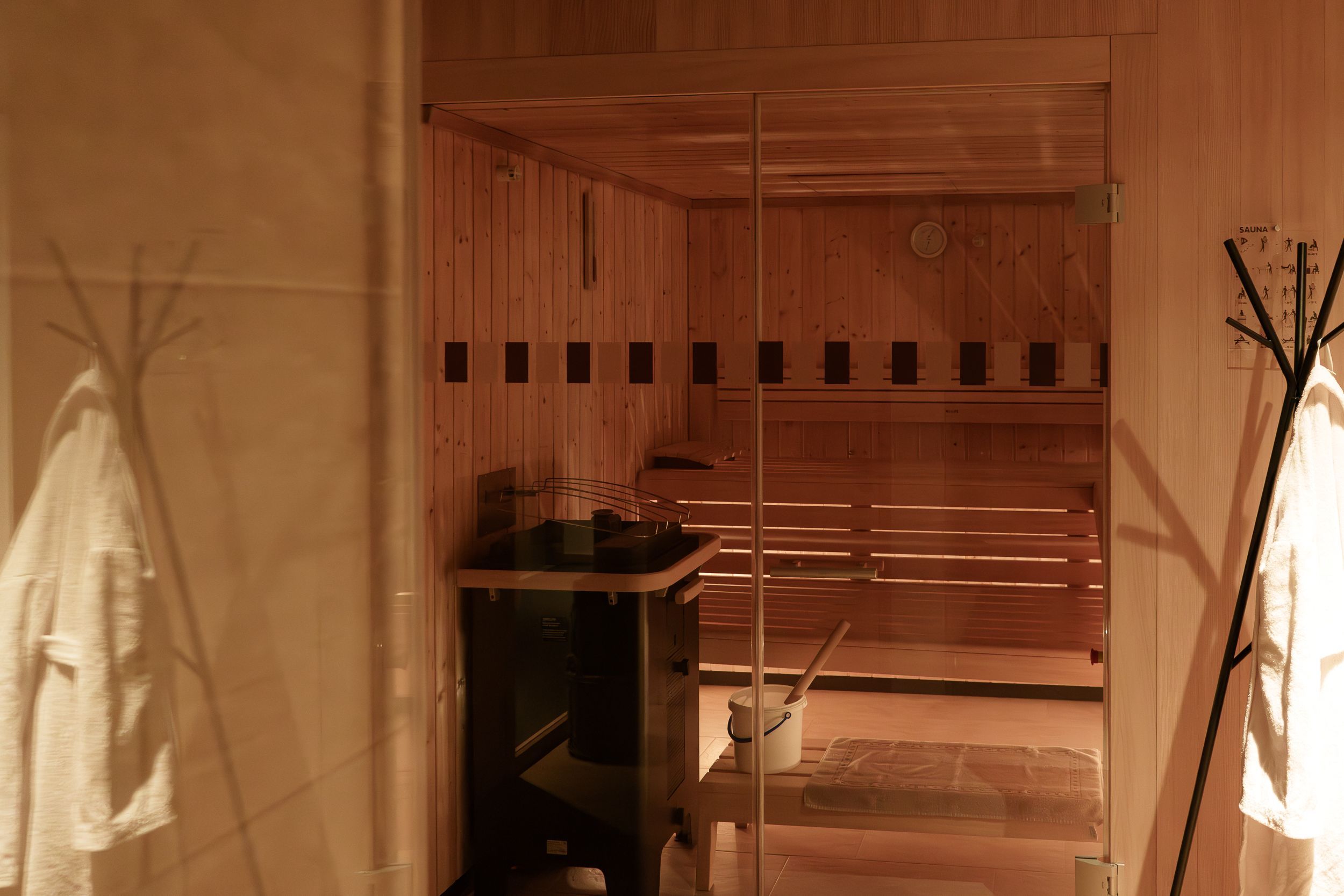 Abends sitzen Sie in der hauseigenen Sauna und lassen die Naturerlebnisse des Tages noch einmal nachwirken oder führen interessante Gespräche im Raum Feuerstelle mit anderen Feriengästen.