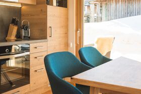 Im Chalet befindet sich eine Wohnküche mit einer voll ausgestatteten Küchenzeile mit Herd, Backofen, Spülmaschine und Mikrowelle.