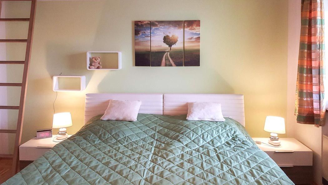 2-Zimmer-Ferienhaus bis 4 Personen, ca. 44 m², 1 Schlafzimmer mit Doppelbett, Wohn-Schlafraum