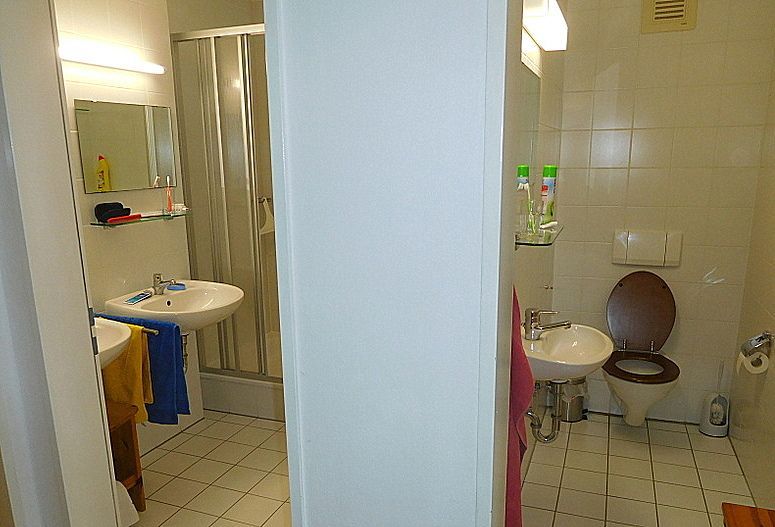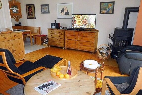 Sie wohnen in einem 3-Zimmer-Appartement für bis zu 6 Personen auf ca. 80 m² Wohnfläche im Erdgeschoss. Ein Schlafraum mit Doppelbett, ein Schlafzimmer mit zwei getrennten Betten und eine Schlafcouch für zwei Personen. Wohnraum mit hübscher Sitzgarnitur, separater Essplatz, Kaminofen, voll ausgestattete, Einbauküche NOLTE mit Elektrogeräten, Spüle und Mikrowelle, Gefrierbox , Diele mit Garderobe, Flur, Dusche/WC mit 1.Hife-Sanitärbox und separates WC, beide Sanitärbereiche mit Fußbodenbeheizung, Terasse, großer Flachbild - TV, Blue-Ray-Player, mittelgroßer 80-cm Flachbildschirm und extra Kleiderständer im 2. Schlafzimmer, Bügelbrett, Safe, Telefon.