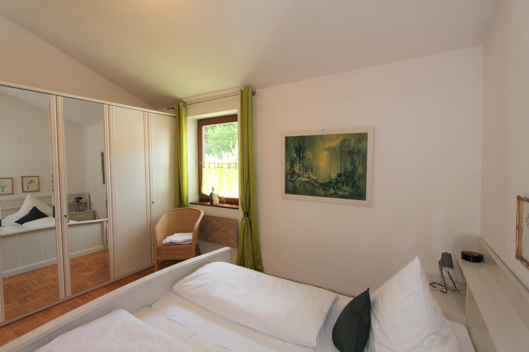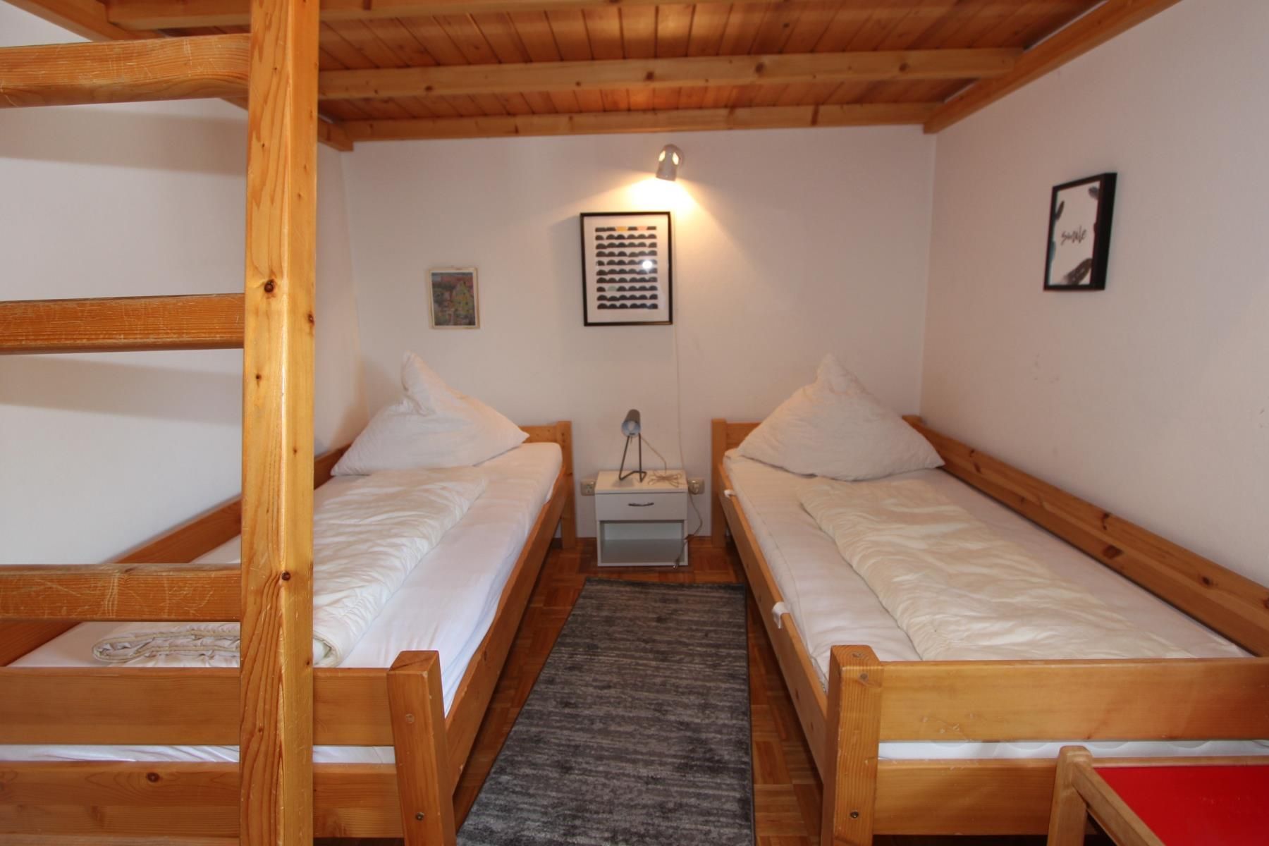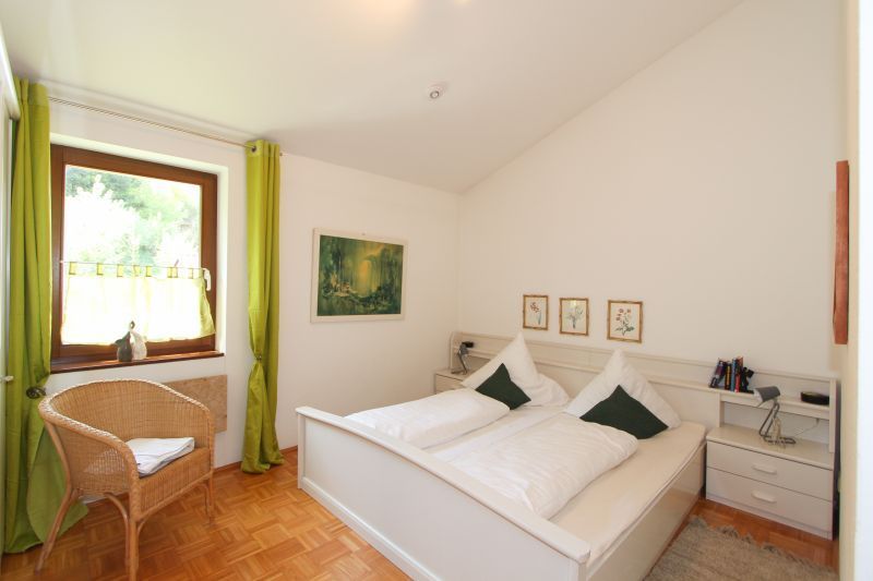 Obergeschoss. Ein Schlafraum mit Doppelbett, ein Schlafzimmer mit zwei getrennten Betten und