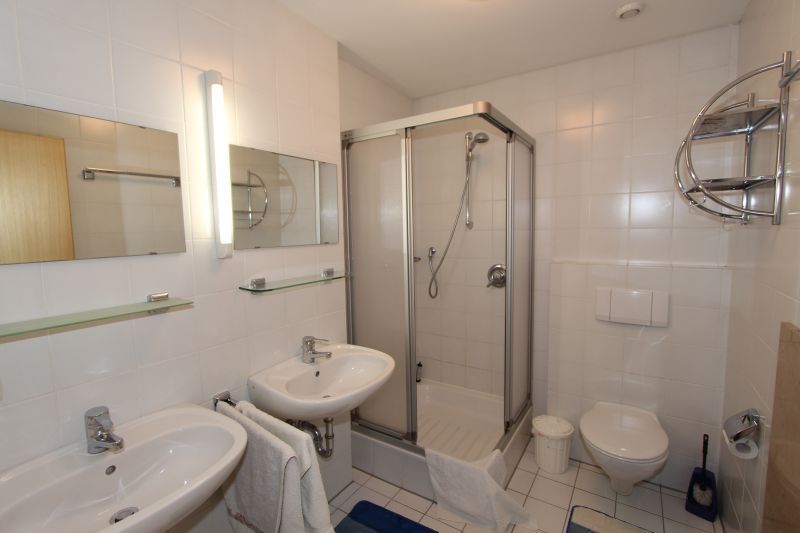 3-Zimmer-Appartement bis 6 Personen, ca. 78 m², 1 Schlafzimmer mit Doppelbett, 1 Schlafzimmer mit getrennten Betten, Wohn-Schlafraum mit Doppelbettcouch oder Schlafgalerie (für Kinder ab 5 Jahren), z.T. mit Kaminofen, separater Essplatz, voll ausgestatteter Küchenbereich, Diele mit Garderobe, Flur, Dusche/WC und separates WC, Balkon oder Terrasse, SAT-TV und Telefon.