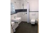 Badezimmer mit ebenerdiger Dusche, Föhn, Hocker / separates WC
