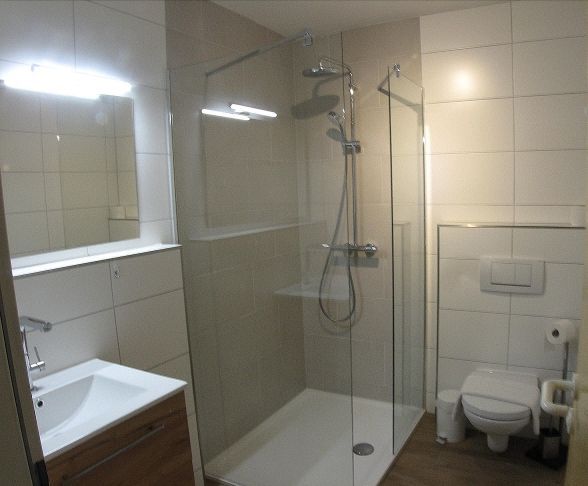 Es steht Ihnen ein kleines WC mit Waschtisch und das größere Bad mit einer 90 cm x 120 cm großen Wohlfühldusche zur Verfügung. Nutzen Sie die Regenschauerfunktion der Dusche, um zu entspannen.