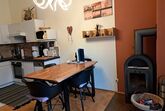 mit 2 bequemen Schlafsofas oder Doppelbettcouch, z.T. mit Kaminofen, separater Essplatz,