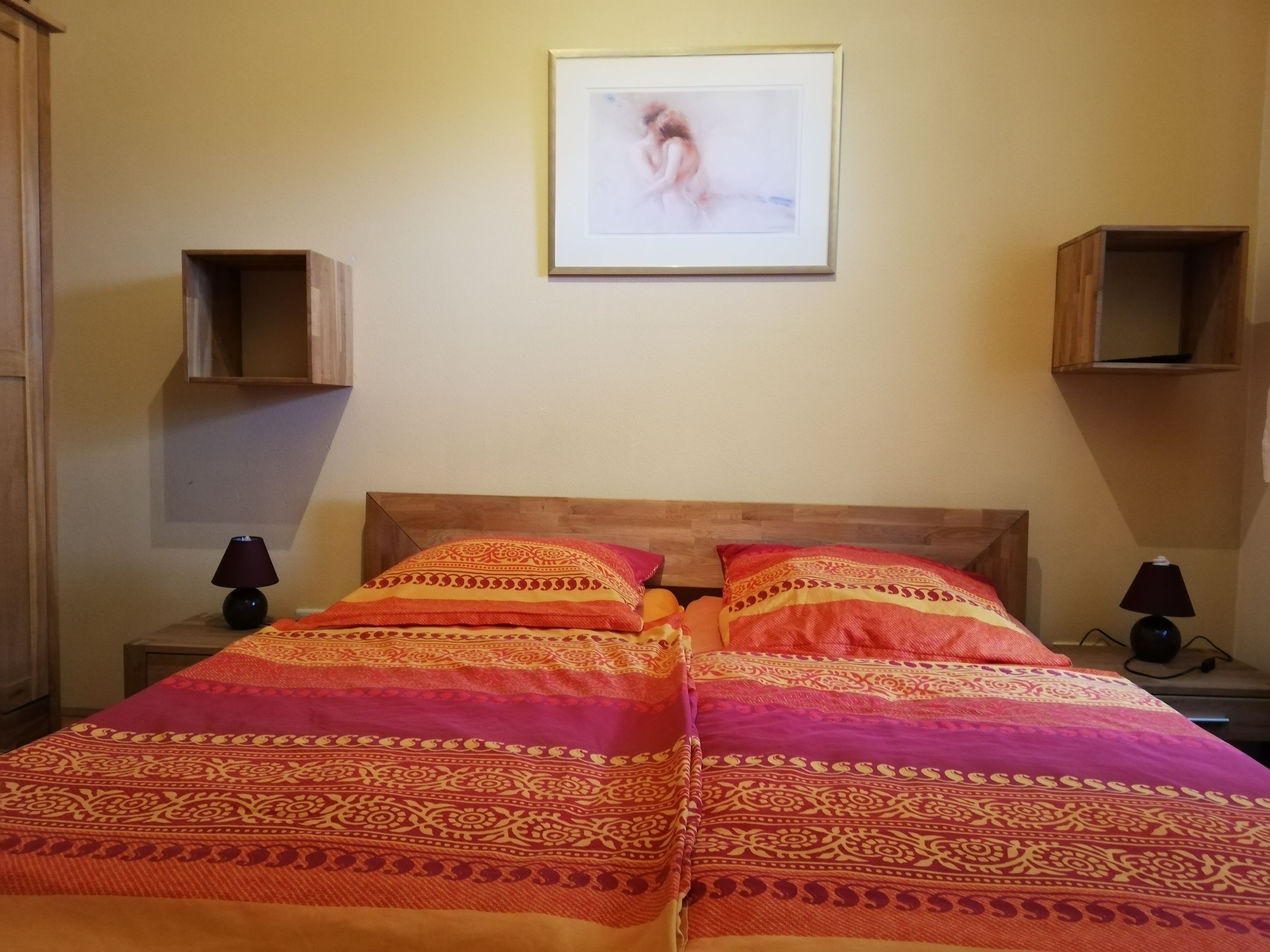 2-Zimmer-Ferienhaus bis 4 Personen, ca. 44 m², 1 Schlafzimmer mit Doppelbett, Wohn-Schlafraum