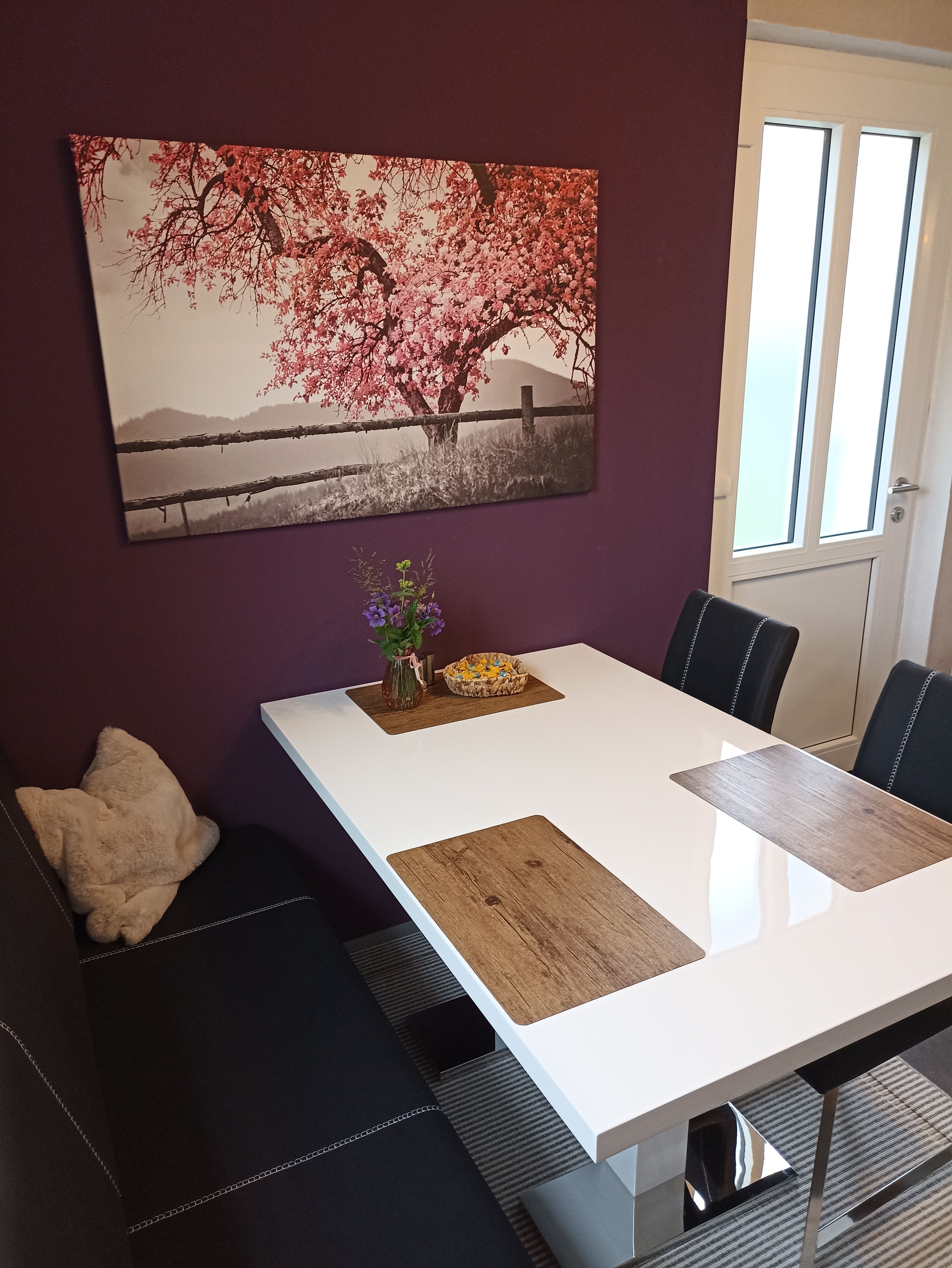 Sie kochen in einer vollausgestatteten Küche (E-Herd mit Cerankochfeld, Geschirrspüler, Kaffeemaschine, Toaster, Eierkocher, Wasserkocher sowie Kühl- und Gefrierkombination), in der es an Aktualität nicht mangelt. Im gemütlichen Essbereich können Sie auf einer geruhsamen Sitzecke, die Platz für vier Personen bereithält, jegliche Mahlzeiten zu sich nehmen.