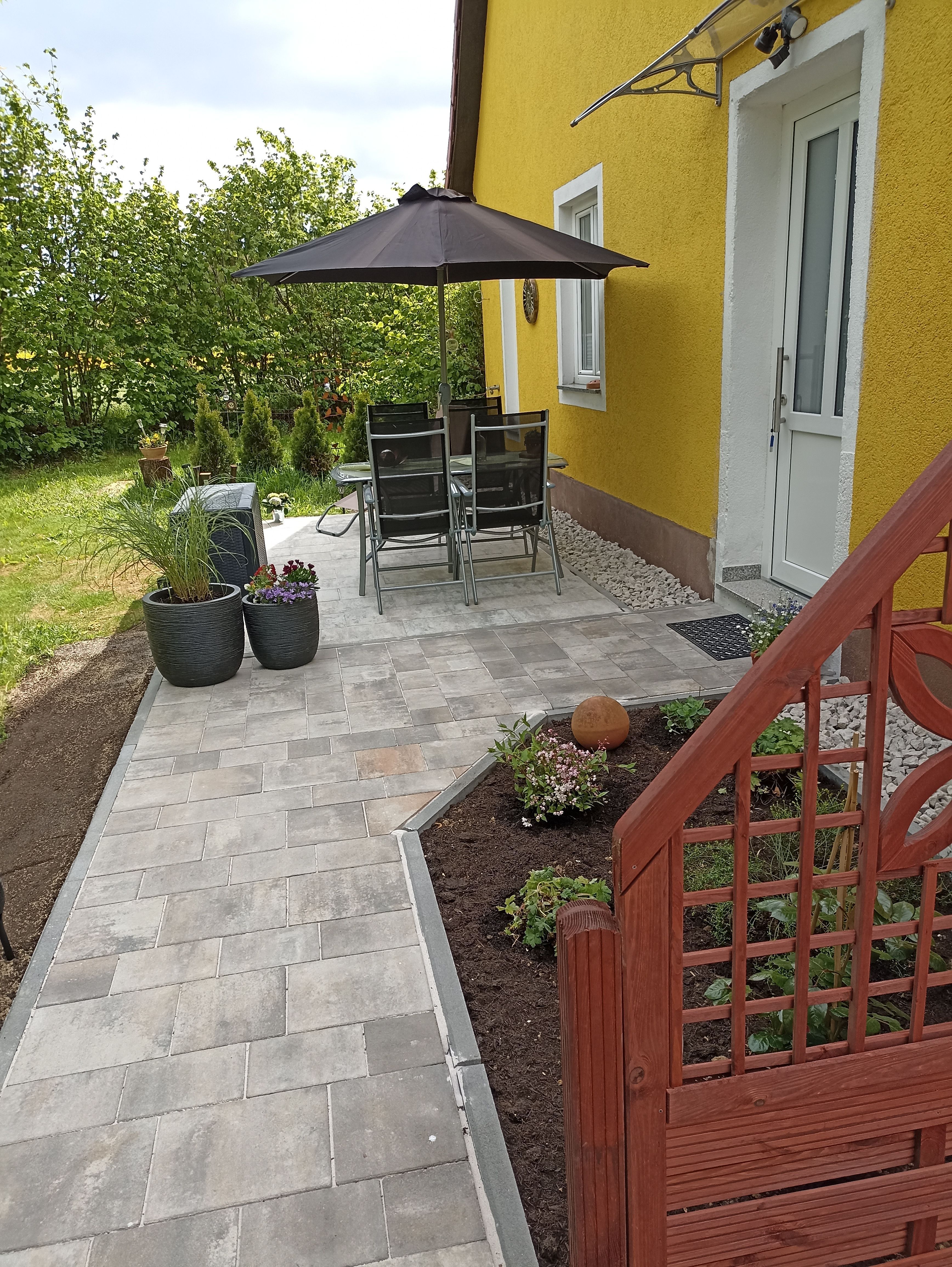 Um gemütlich Draußen sitzen zu können, lädt die abgetrennte Sitzgruppe mit Sonnenschirm, die ausreichend Platz für vier Personen bietet, zum Verweilen ein. Auch ein Stellplatz steht kostenlos für Sie bereit.