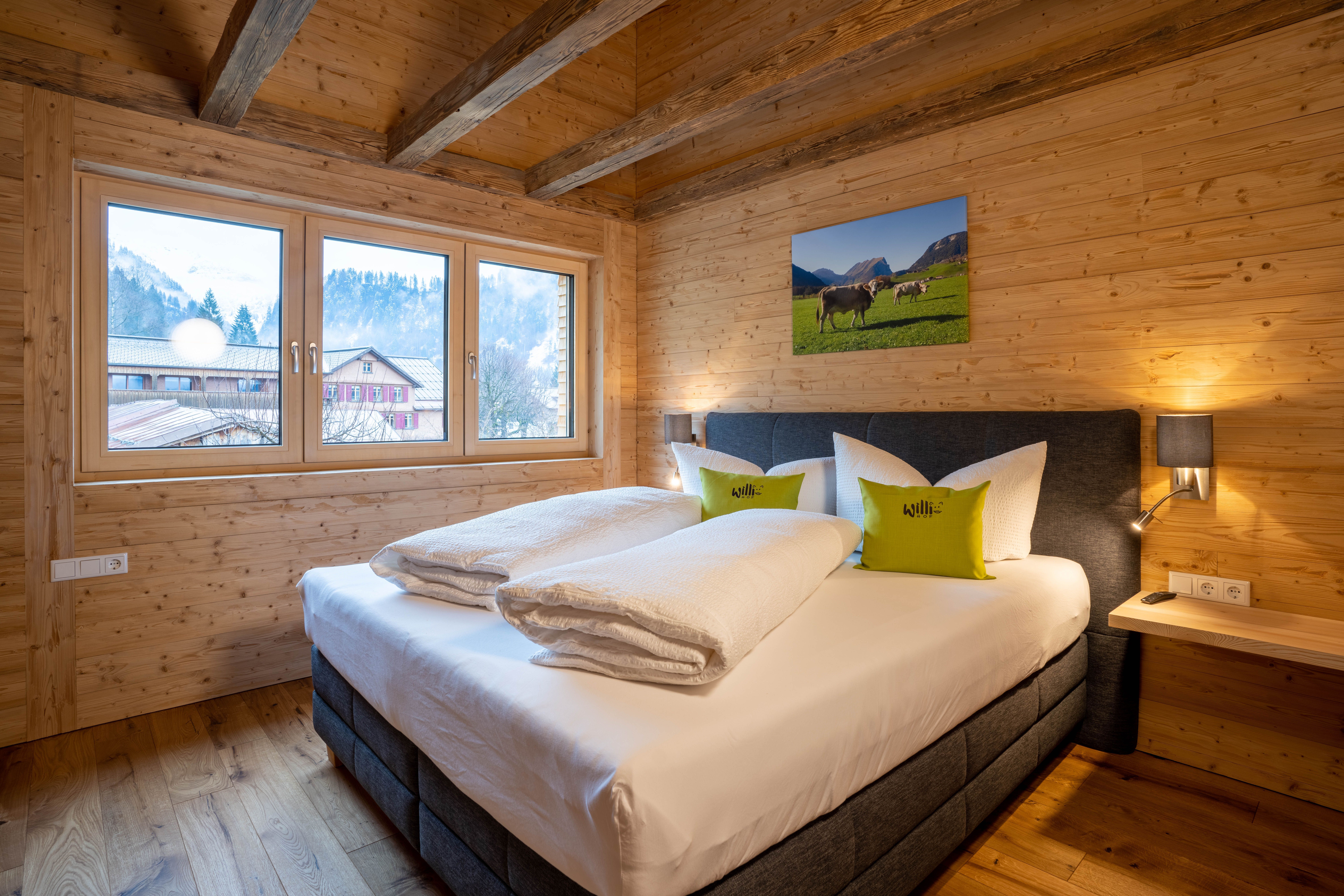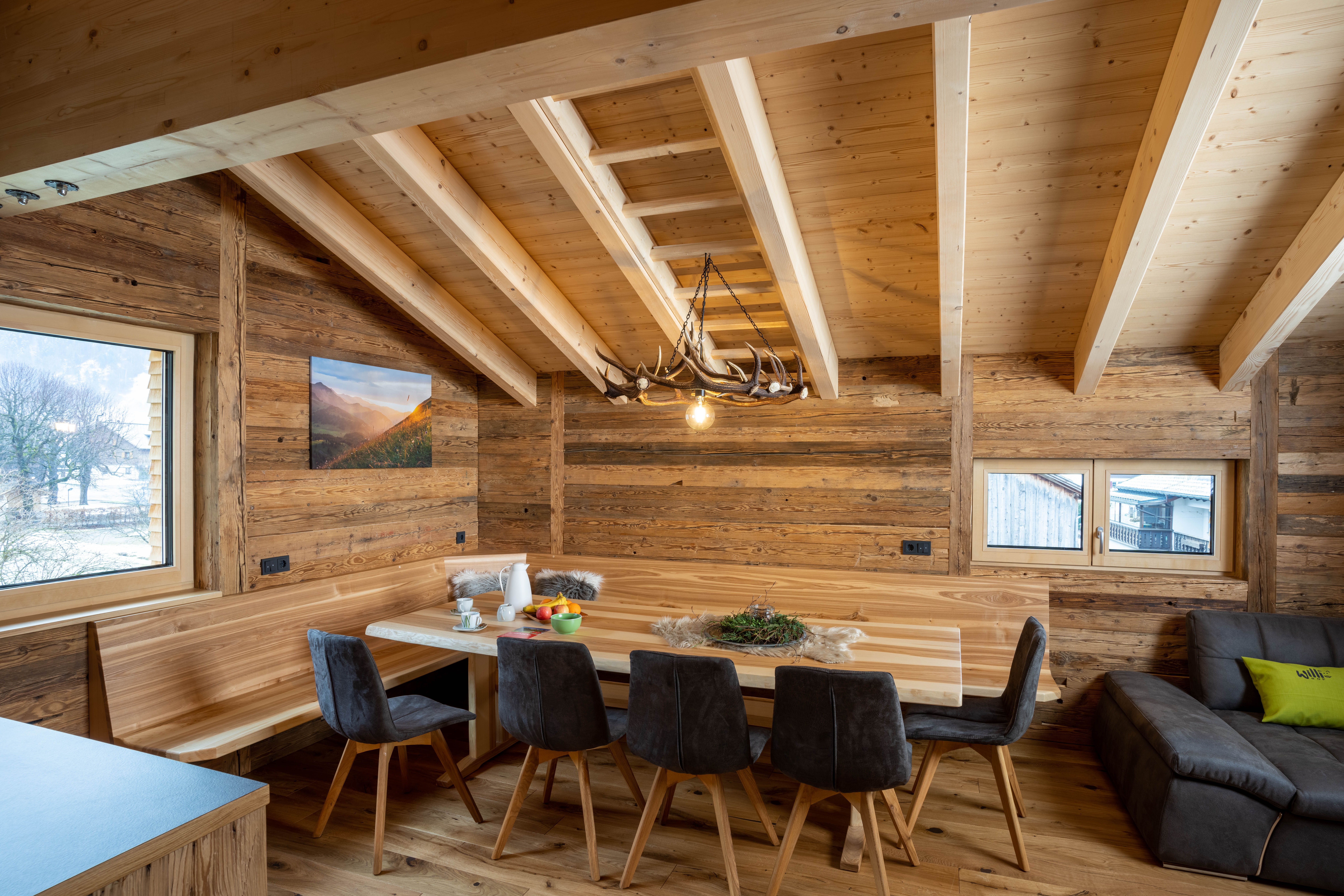 Es ist mit vier Doppelzimmern, einer Wohnküche und zwei separaten Nasszellen mit Dusche und WC ausgestattet. Sein geräumiger und zum Raum hin offener Dachboden eignet sich gerade für Kinder als Spiel- oder einfach als Rückzugsraum.