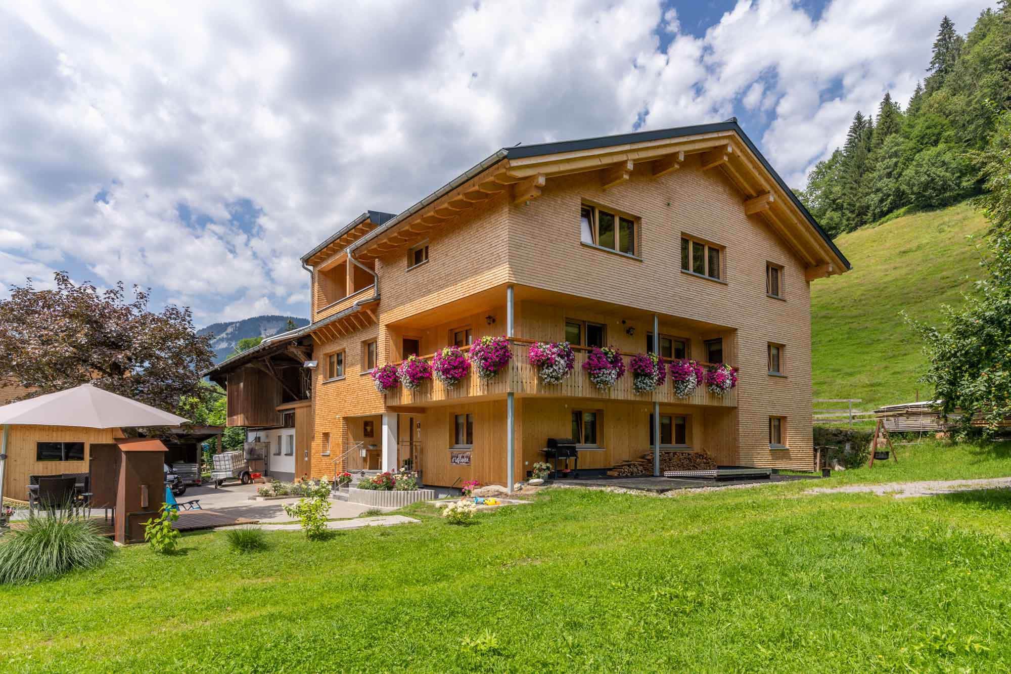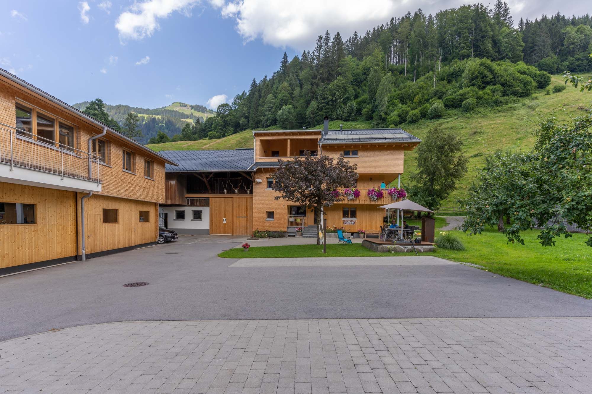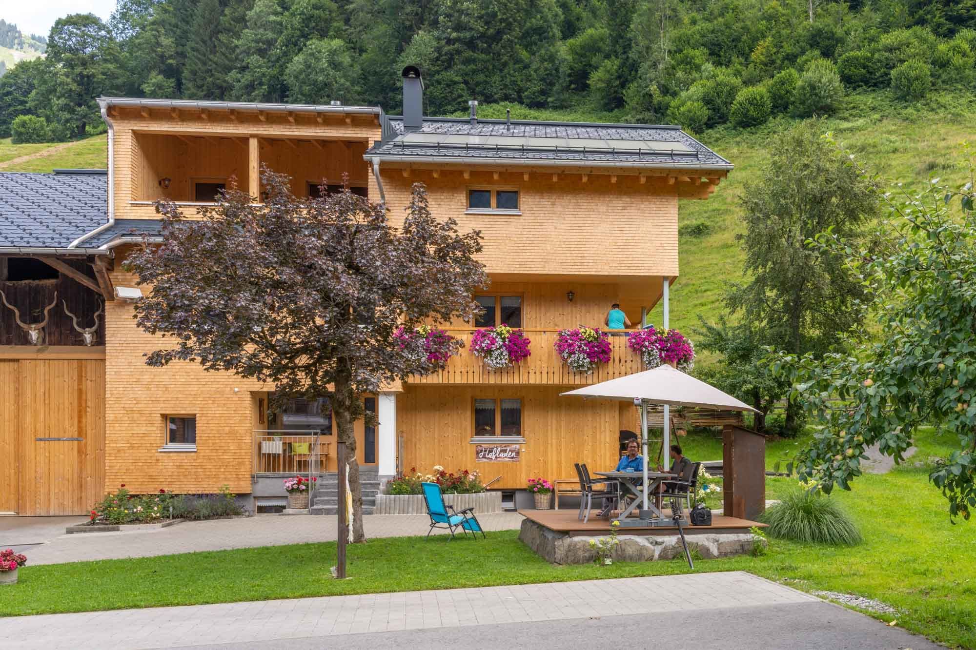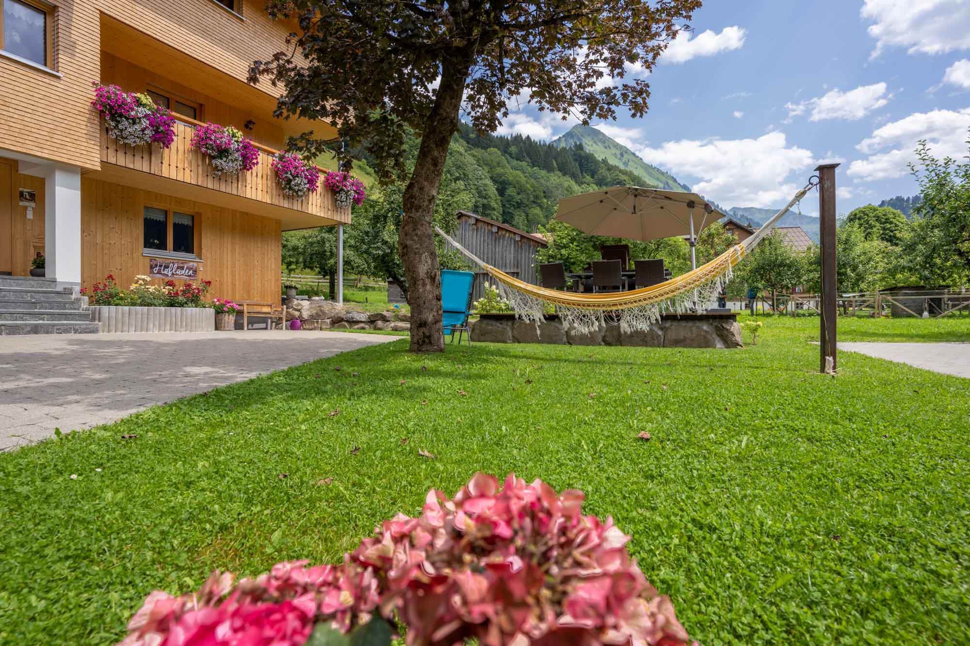 Wenn Sie es lieber gemütlich angehen wollen, unser gepflegter Hofplatz bietet sich an zum Spielen, Sitzen und Liegen, oder um einfach die Natur zu genießen. Sollten Sie Spaß im kühlen Nass bevorzugen: das beheizte Freibad von Schoppernau liegt wenige Gehminuten von unserem Haus entfernt.