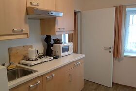 Dieses Apartment verfügt über 2 separate Schlafzimmer, eine Küchenzeile, ein Wohnzimmer, ein großes Bad, ein separates WC und einen Vorraum mit einem Einbauschrank.