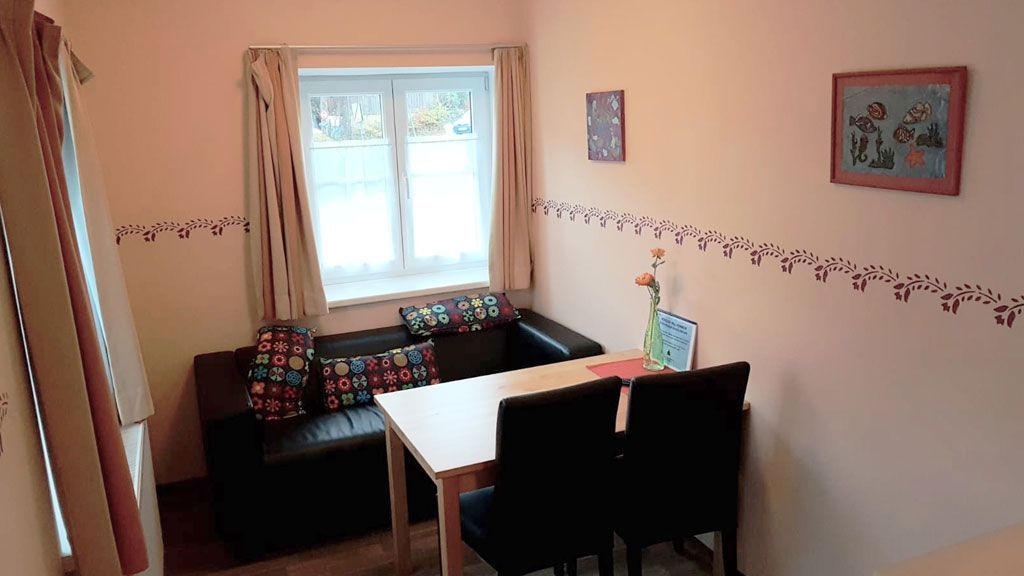 Ein Aufenthaltsraum lädt zum Verweilen, Lesen oder Spielen ein.