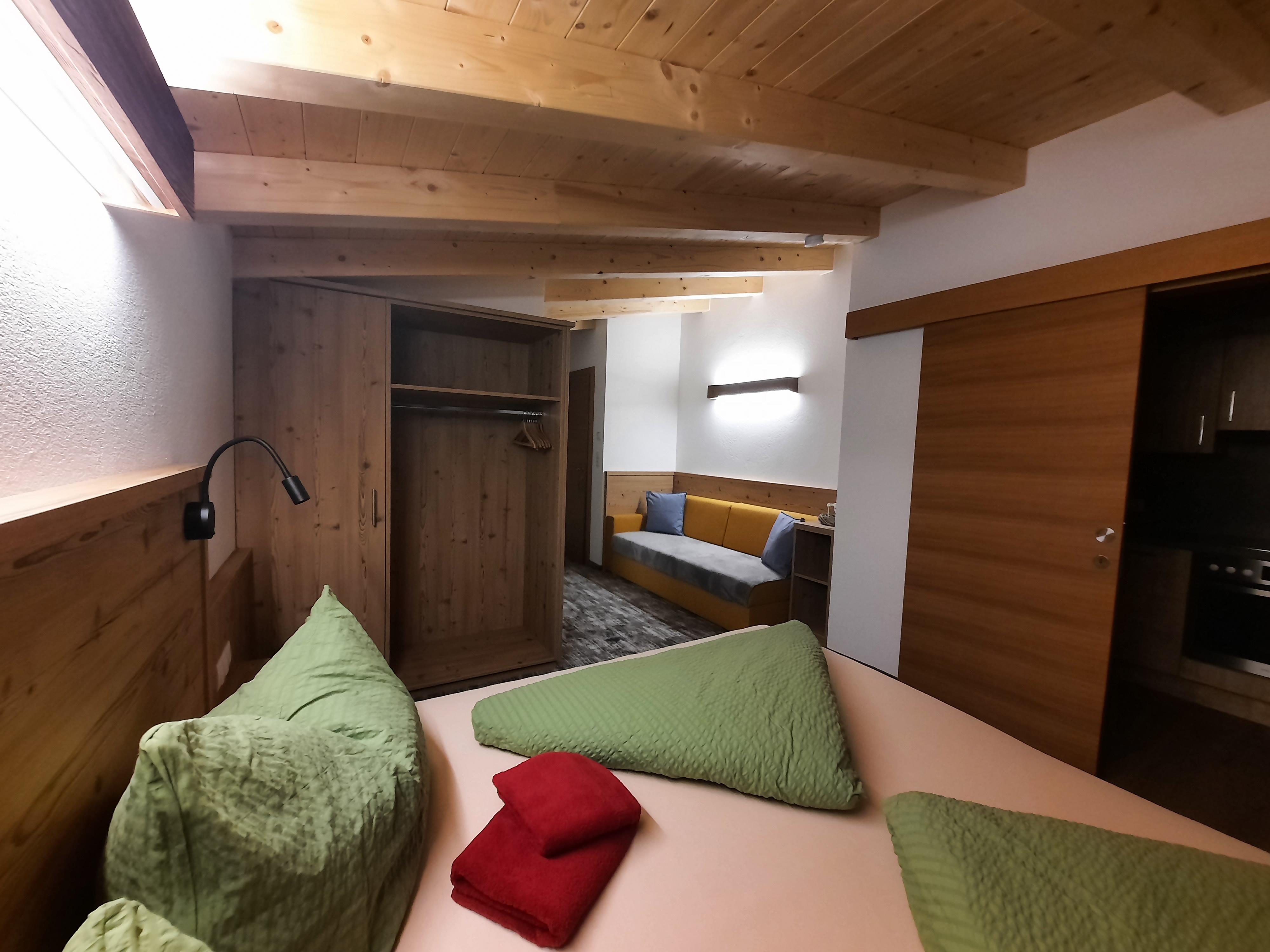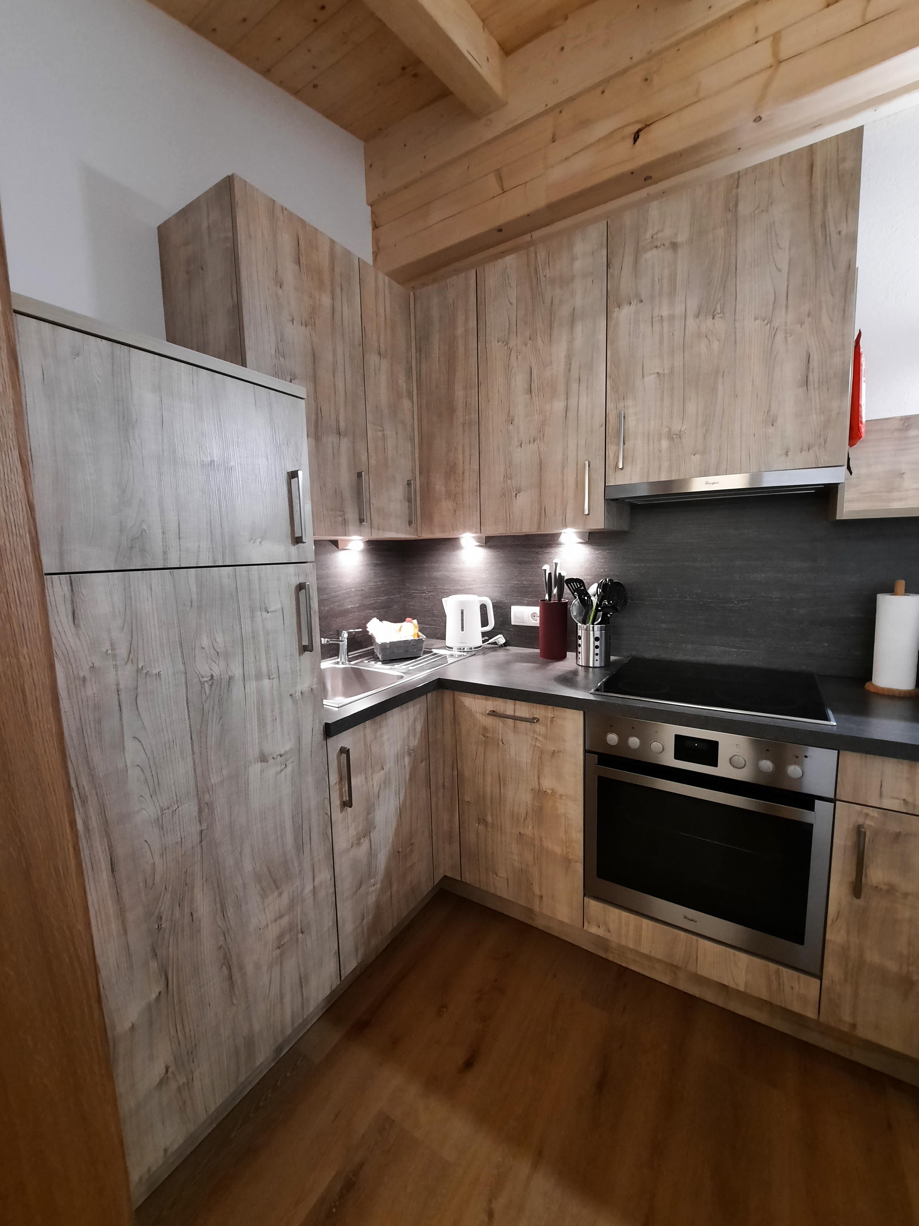 Apart II (ca. 30 m²) besteht aus einem Doppelzimmer mit einer Schlafcouch für die 3. Person, einem angrenzenden Badezimmer mit Dusche/WC und einer vollausgestatteten Wohnküche (Kapsel-Kaffeemaschine, Soda Stream, Spülmaschine, Backofen, 2-Platten Herd, Kühlschrank mit Gefrierfach, Toaster und Wasserkocher uvm.)