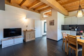 Von der Wohnung aus können Ausflüge direkt gestartet werden. Der große Wohnraum ist mit einer gut ausgestatteten Küche, einer Couch und einer gemütlichen Essgruppe ausgestattet. Das Duschbad verfügt über ein WC. Im Schlafzimmer befindet sich ein Doppelbett und ein geräumiger Kleiderschrank. Ihr E-Auto können Sie in ca. 90 Meter Entfernung an einer öffentlichen Ladestation laden, Bikeverleih, Skilifte und Loipen sind Fussläufig erreichbar.