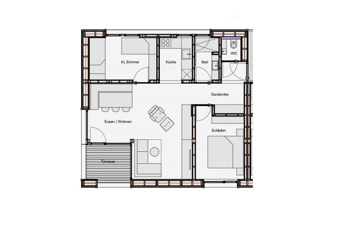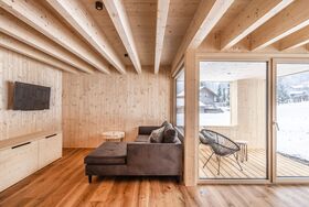 Das verwendete Fichtenholz bringt heimelige und gemütliche Atmosphäre ins Ferienhaus.