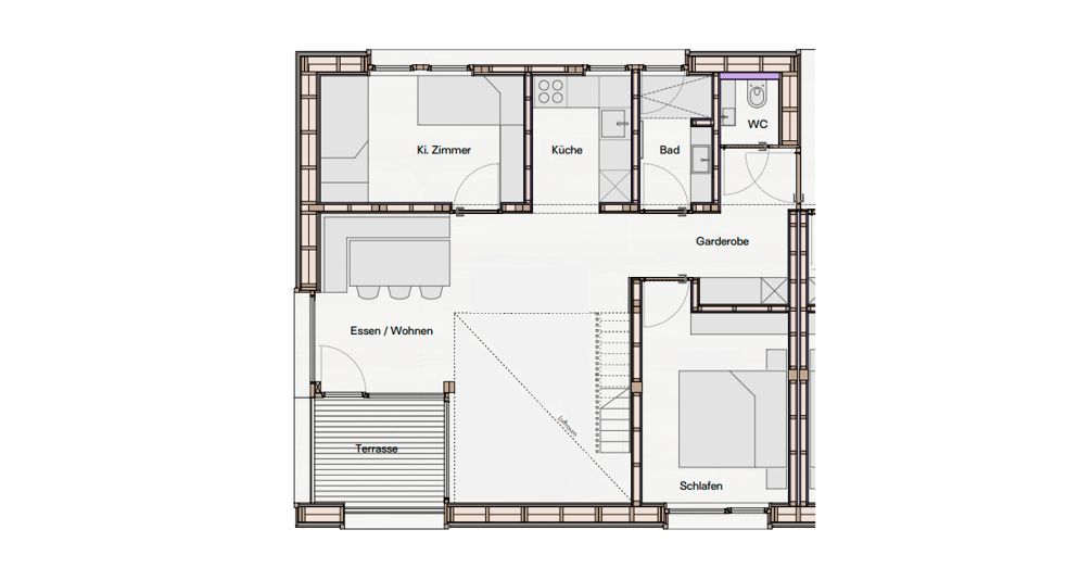 Das verwendete Fichtenholz bringt heimelige und gemütliche Atmosphäre ins Ferienhaus.