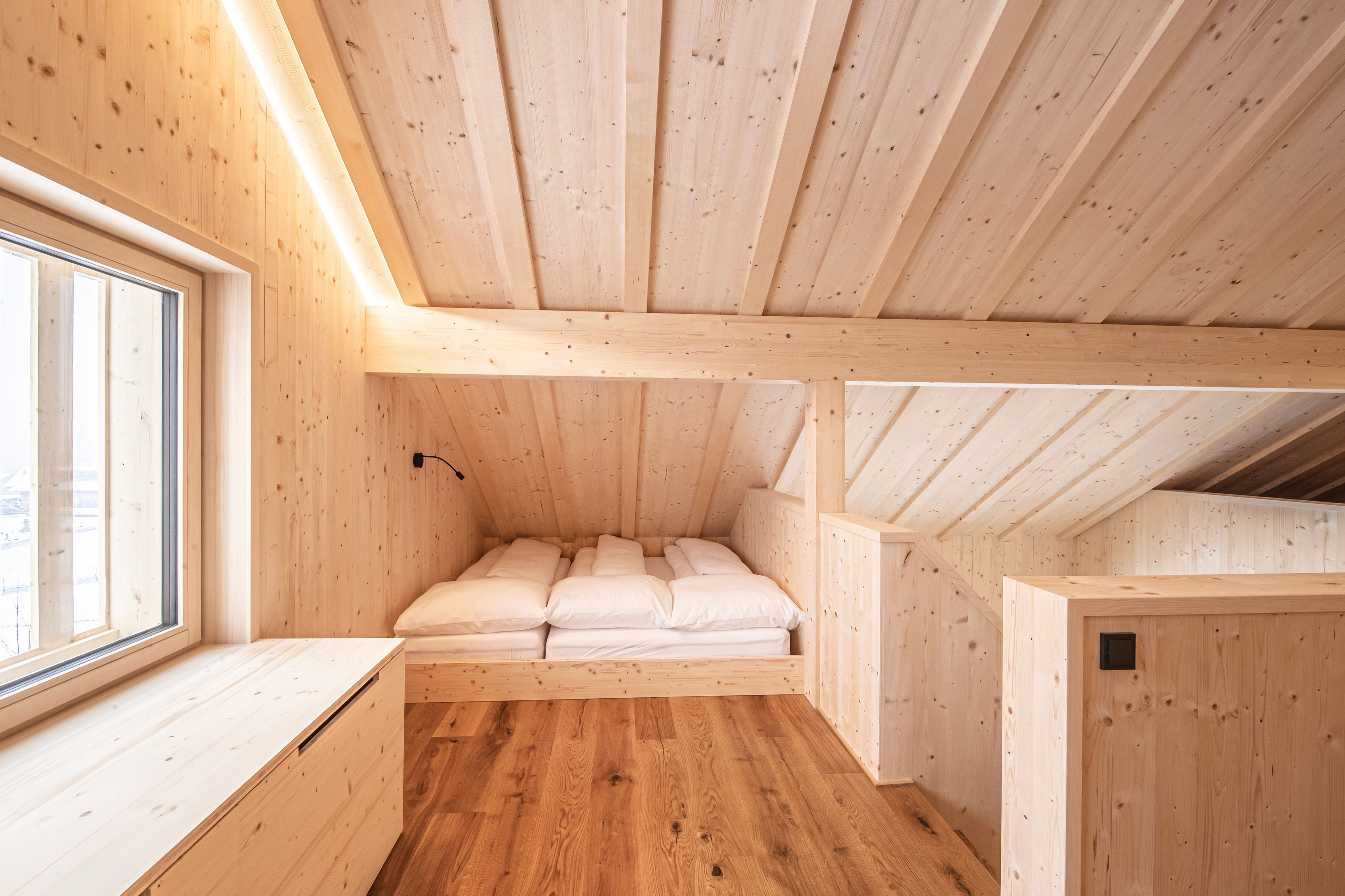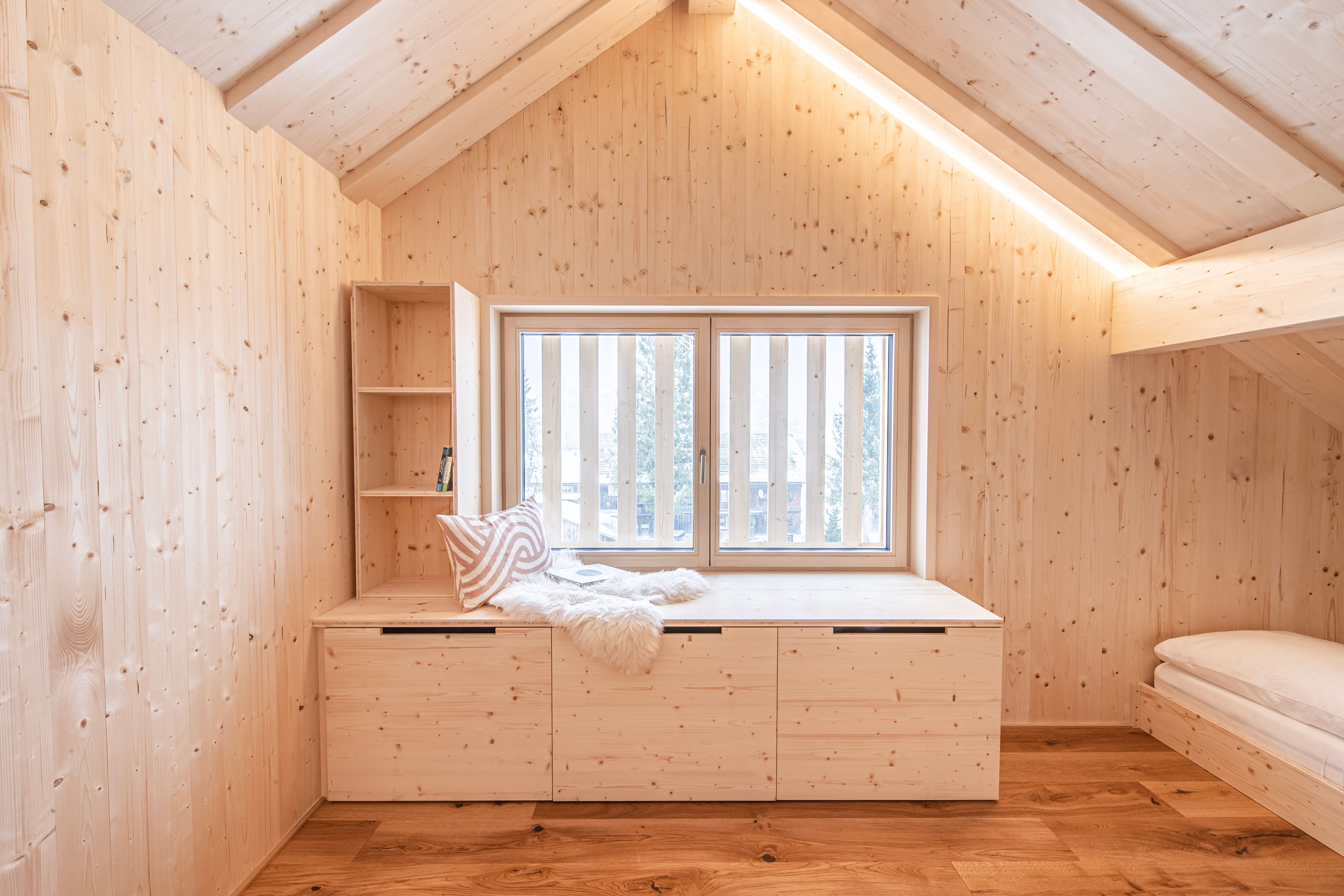 Das verwendete Fichtenholz bringt heimelige  und gemütliche Atmosphäre ins Ferienhaus.