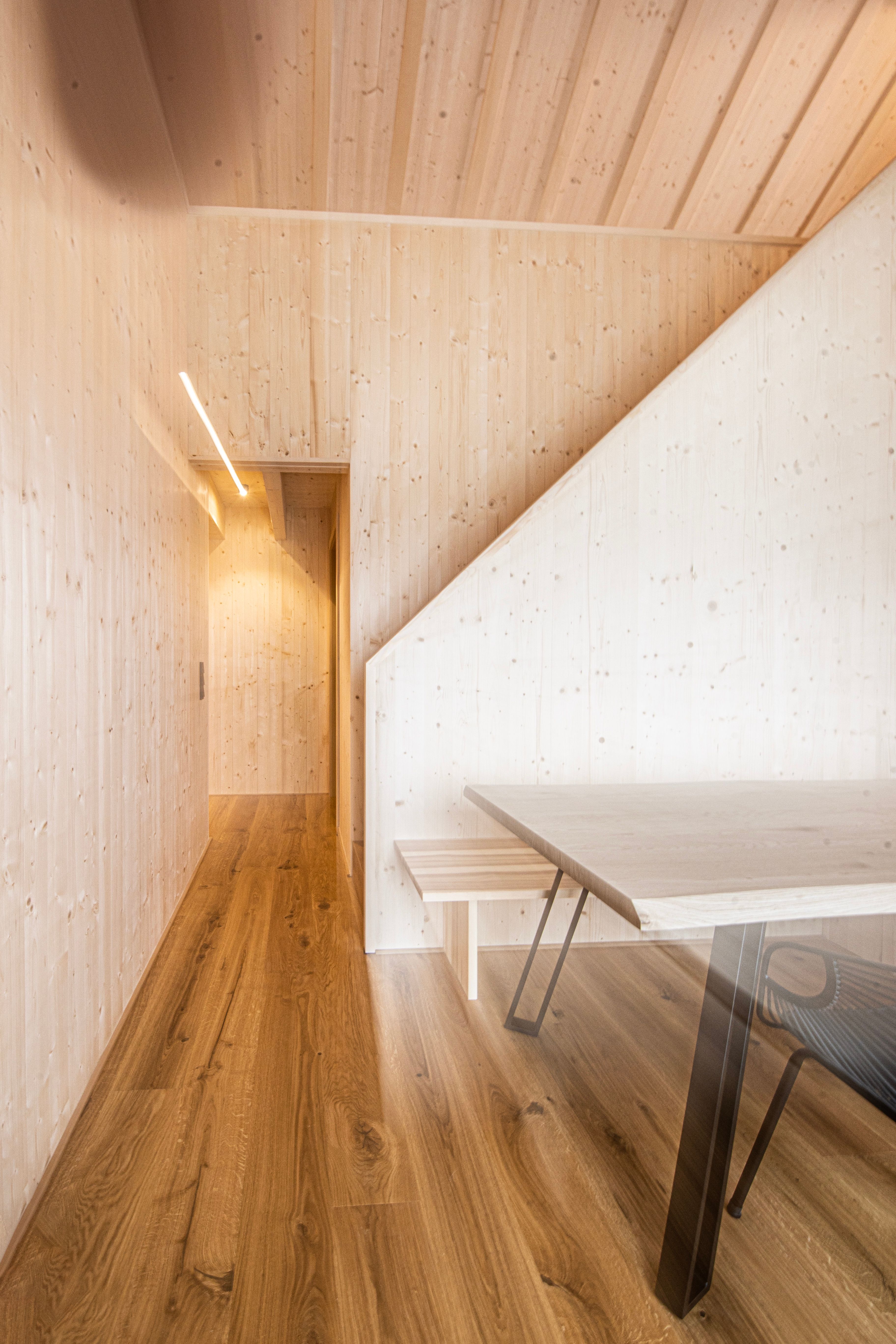 Das Ferienhaus wurde im Jahr 2022 fertiggestellt. Es wurde vom Bregenzerwälder Architekten Johannes Kaufmann geplant und von heimischen Unternehmen umgesetzt.