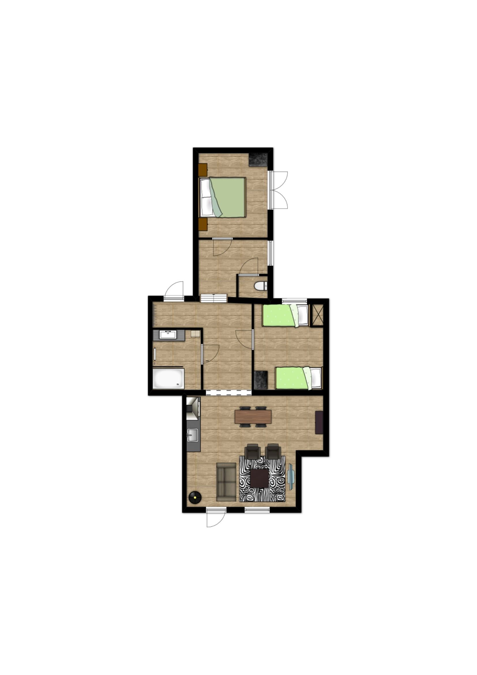 1 Schlafzimmer mit 2 separaten Betten und Ausziehbett