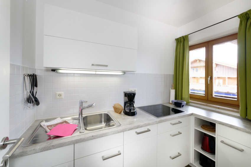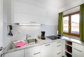 separate Küche mit 4-Plattenherd, Geschirrspüler, Kaffee- oder Senseo Pad Maschine, Wasserkocher, Toaster