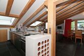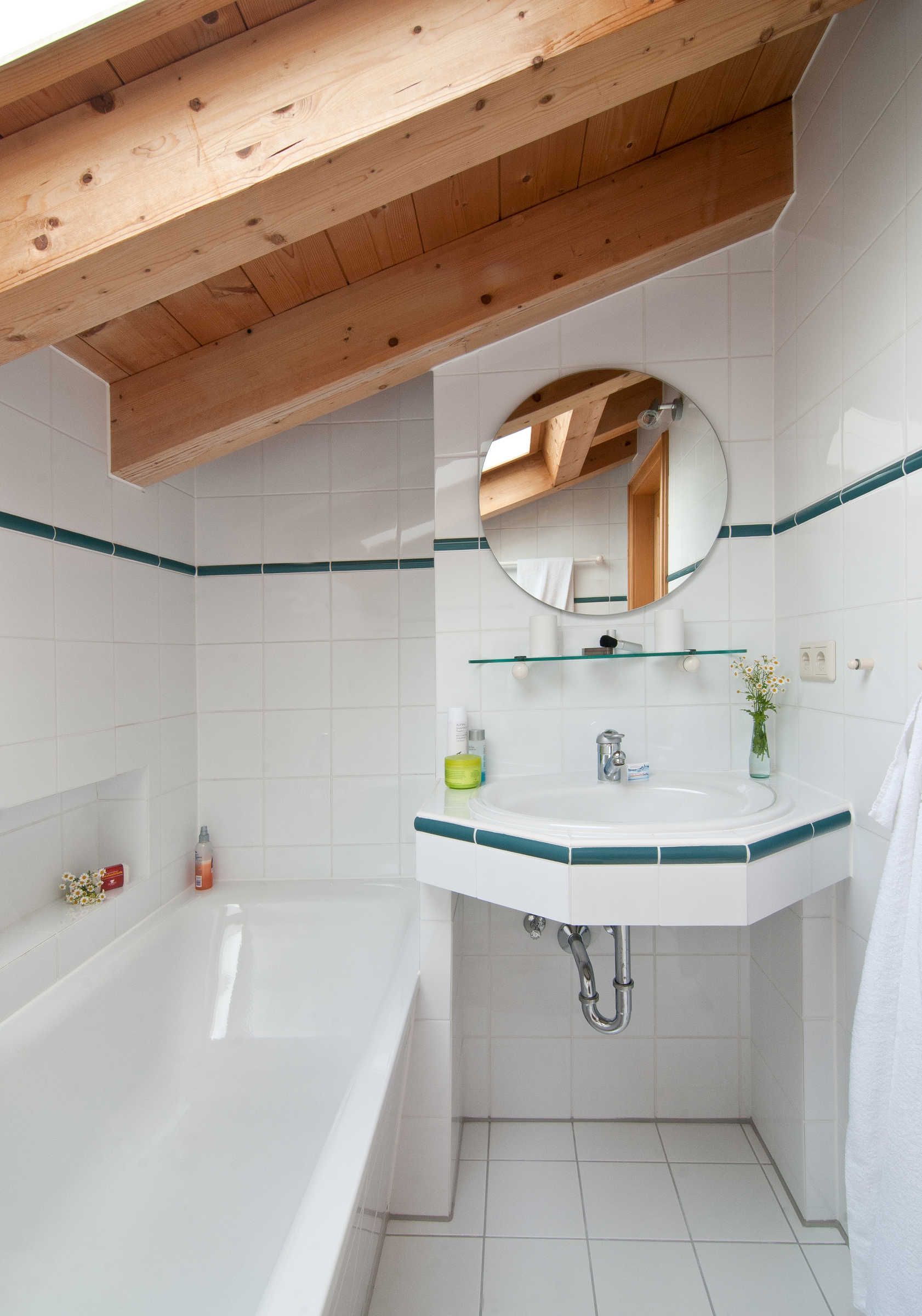 Die 80 qm große 3-Zimmer-Panorama-Wohnung SONNENBICHL befindet sich im 3. Stock (ohne Aufzug), der das Dachgeschoss des Hauses darstellt und ist ideal für 2 bis 4 Gäste. Stilvoll sind die offenen Dachbalken im Dachstuhl zu sehen, durch die elektrischen Dachfenster wird die Wohnung besonders hell (in den Schlafzimmern mit Verdunkelungsrollos). Sie sehen von beiden Schlafzimmern von den Betten aus die Sonne über dem See und den Bergen aufgehen. Am Nachmittag genießen Sie am längsten die Sonne auf Ihrem Westbalkon, bis sie hinter den Bergen verschwindet.