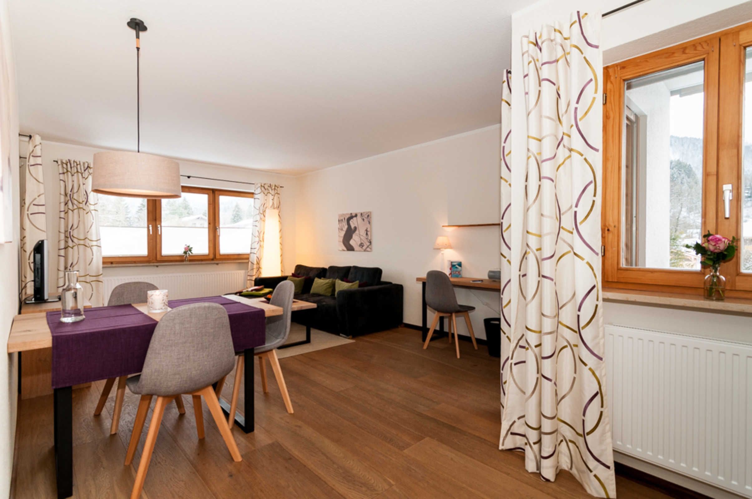 Die 55 qm große 2-Zimmer-Wohnung WIESBAUER befindet sich im 2. Stock und ist ideal für 2 Gäste. Die Wohnung hat je einen Balkon nach Süden und nach Westen und bietet Blick auf das umliegende Bergpanorama, den Garten sowie seitlichen Blick auf den Tegernsee. Mit wenigen Handgriffen wird die Eckcouch im Wohnzimmer zu einer zusätzlichen Schlafgelegenheit.