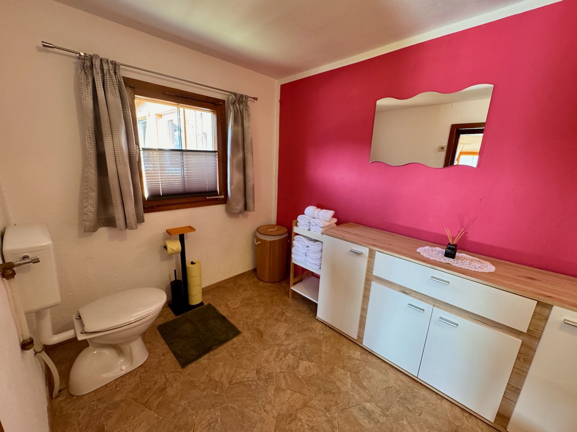 Die Wohnküche ist mit Holz- und Elektroherd sowie Spülmaschine gut ausgestattet. In der geräumigen Stube mit wärmendem Kachelofen und Fernseher können Sie den Tag gemütlich ausklingen lassen. Auch ein Bad mit Waschbecken und WC darf nicht fehlen.
