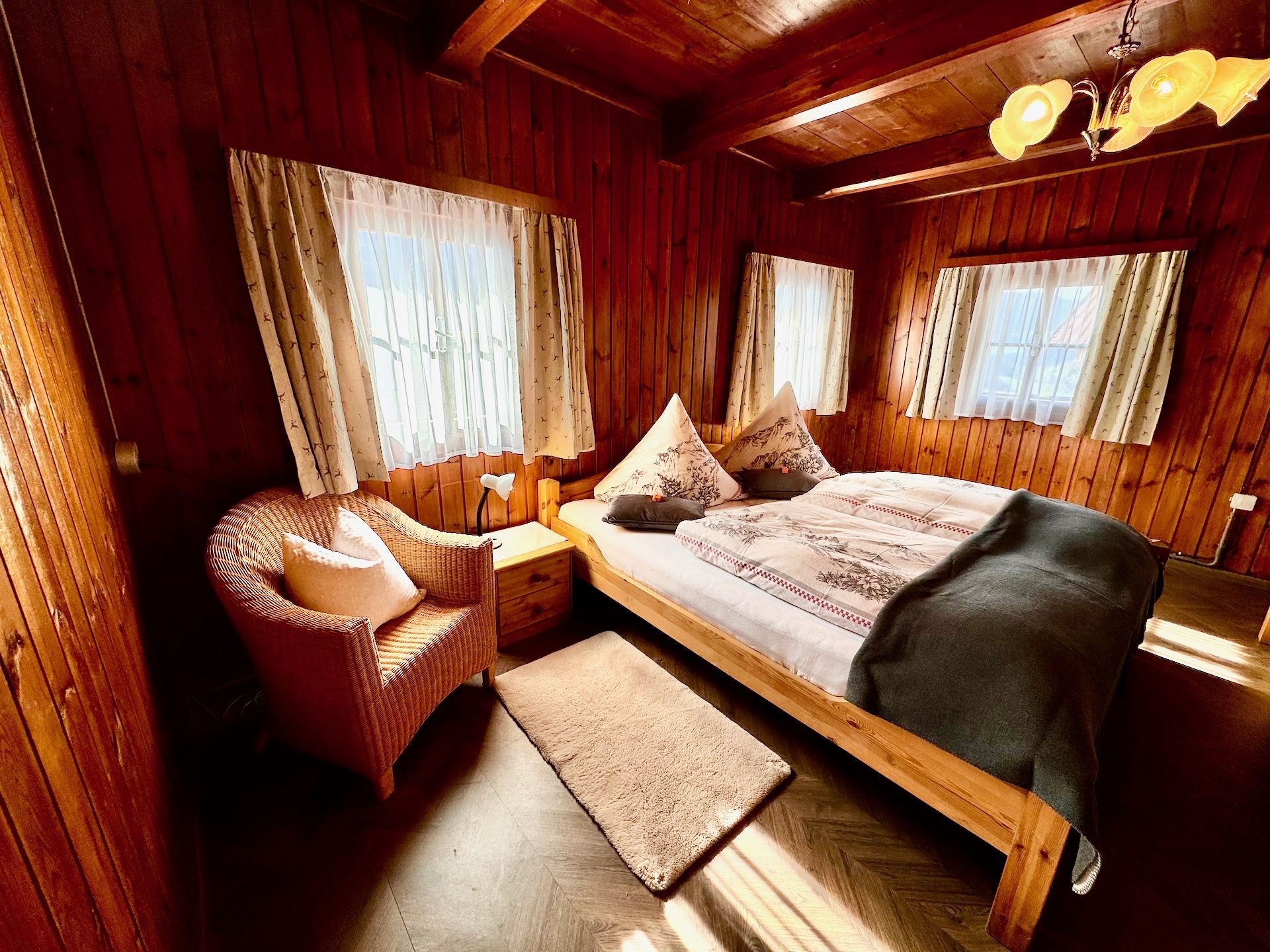 Aufgeteilt auf zwei Schlafzimmer mit neuen und bequemen Holzbetten und einer Schlafcouch im Wohnzimmer eignet sich der alte Bauernhof gut für Familien oder kleinere Gruppen. Sie bewohnen die geräumige Hütte mit bis zu acht Personen allein.