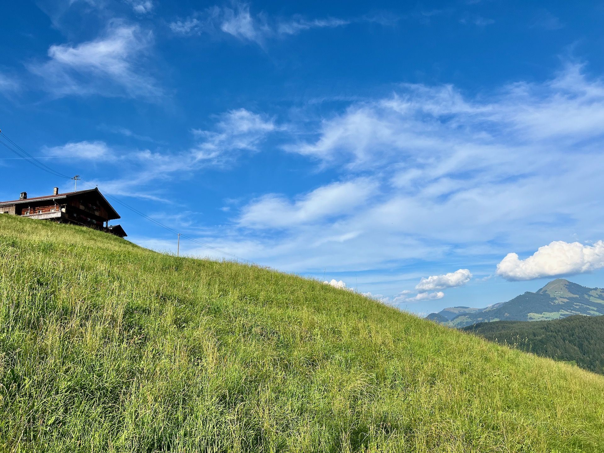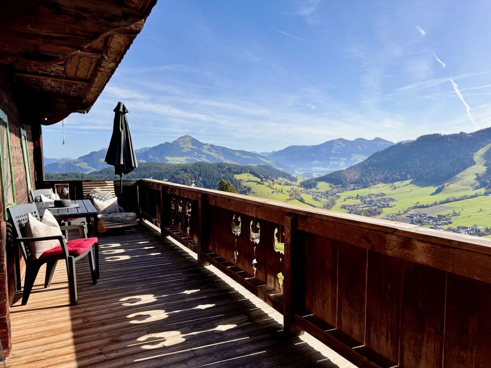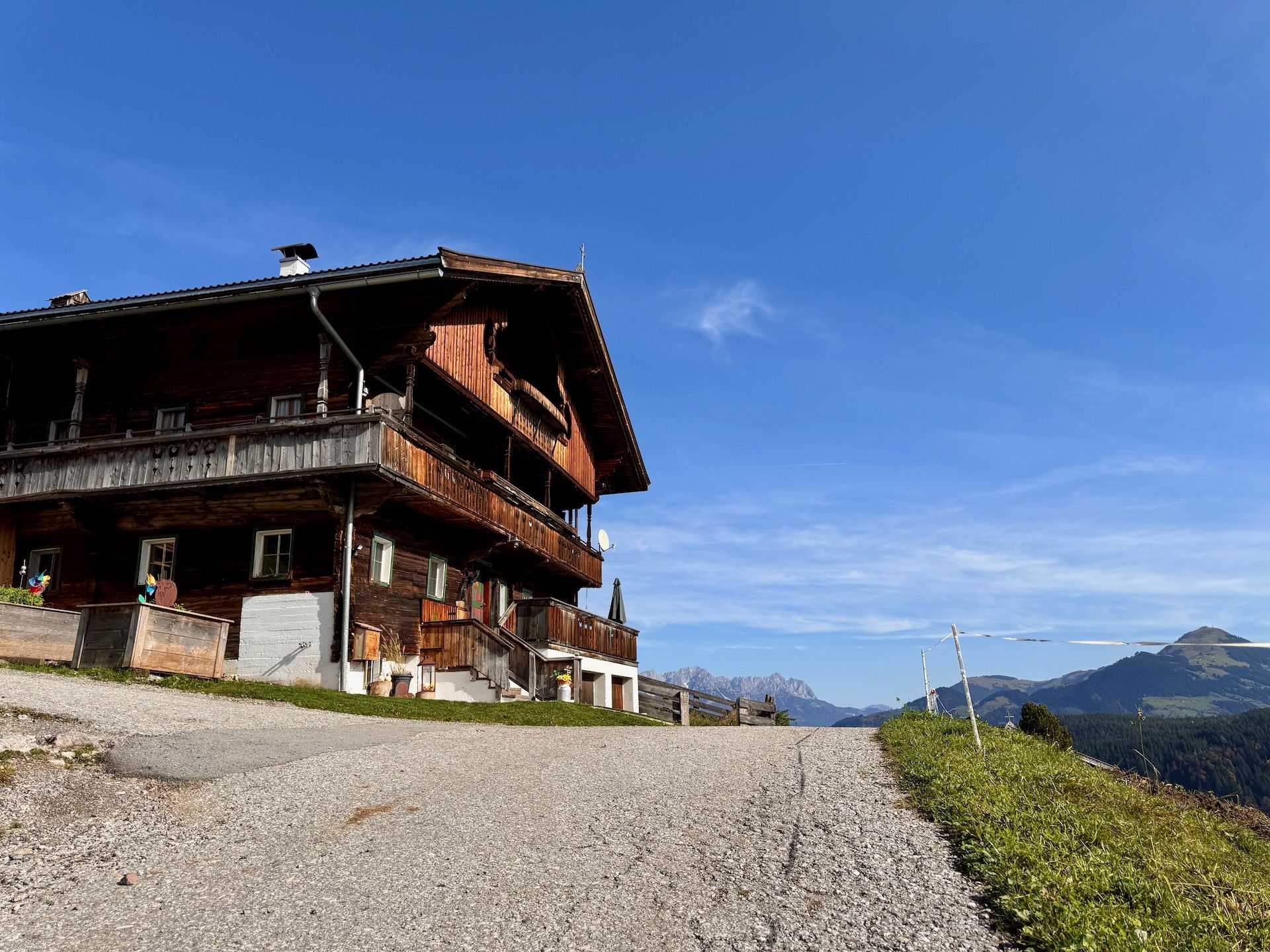 Genießen Sie von dem urigen Bergbauernhaus das wunderschöne Panorama über den Wilden Kaiser und die Kitzbüheler Alpen.