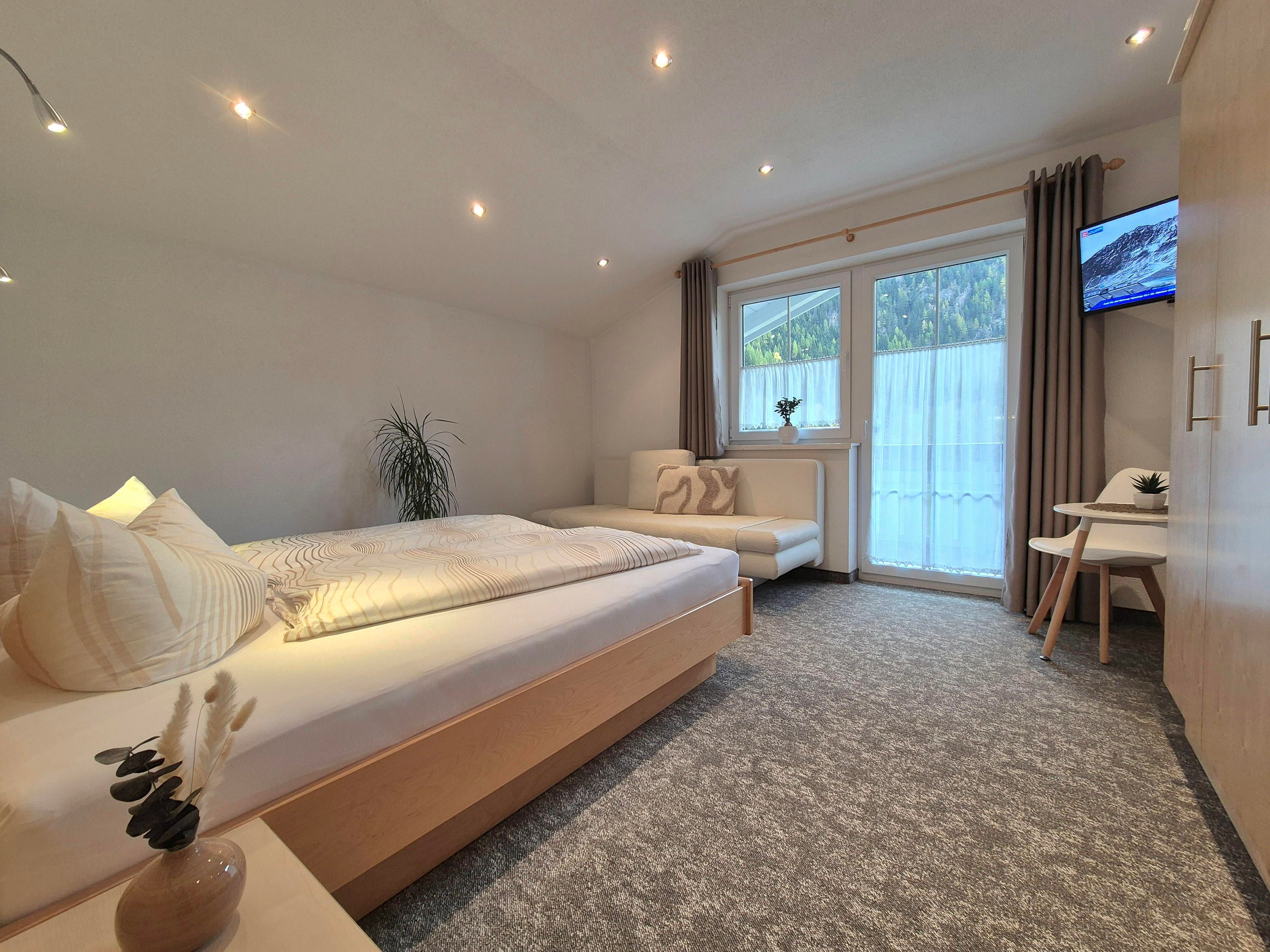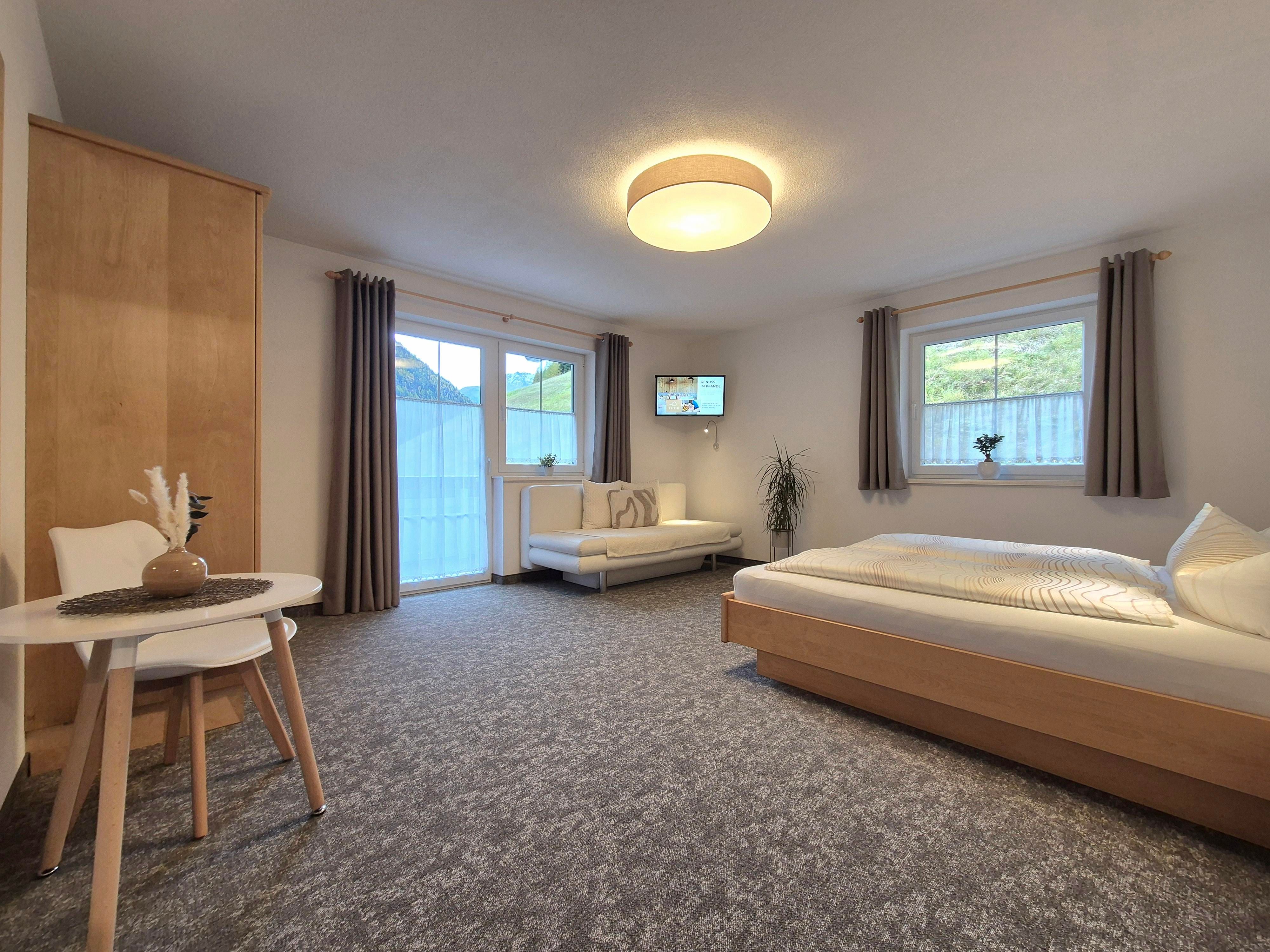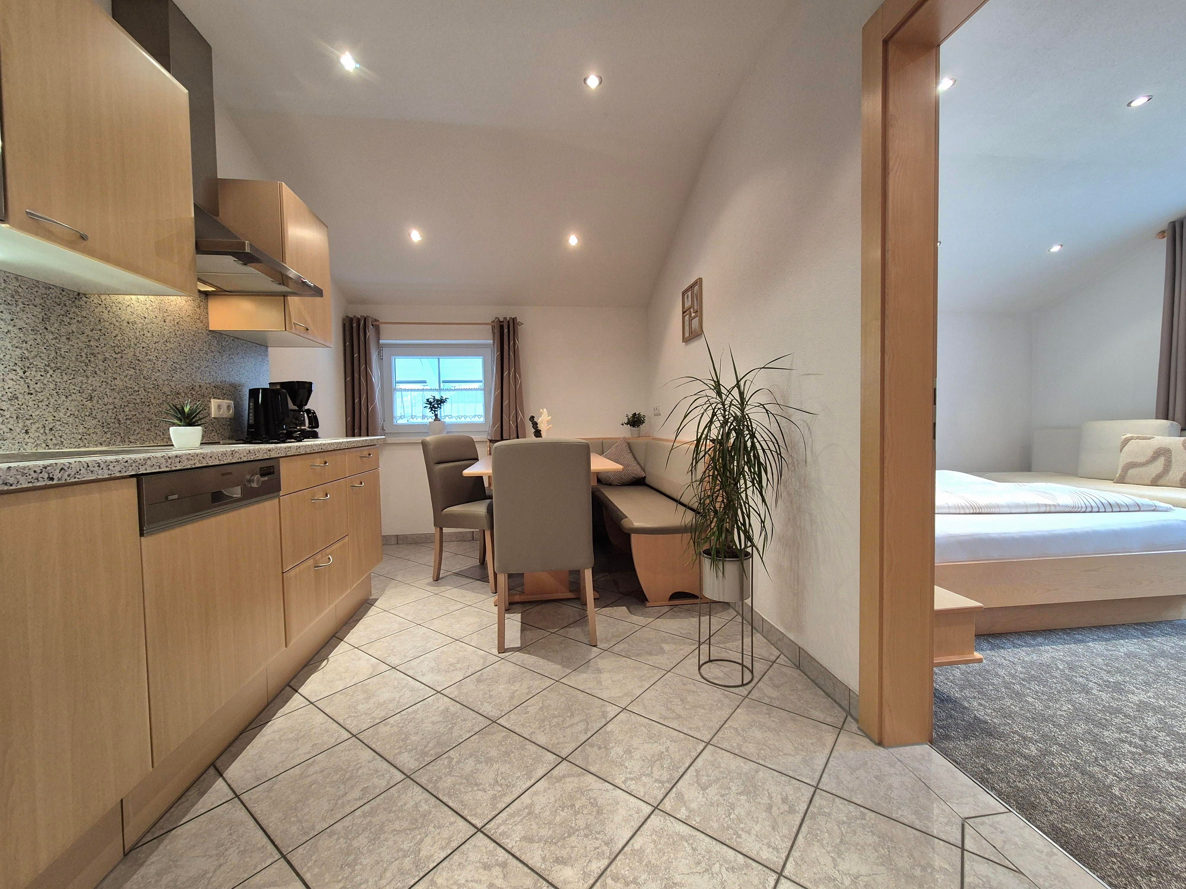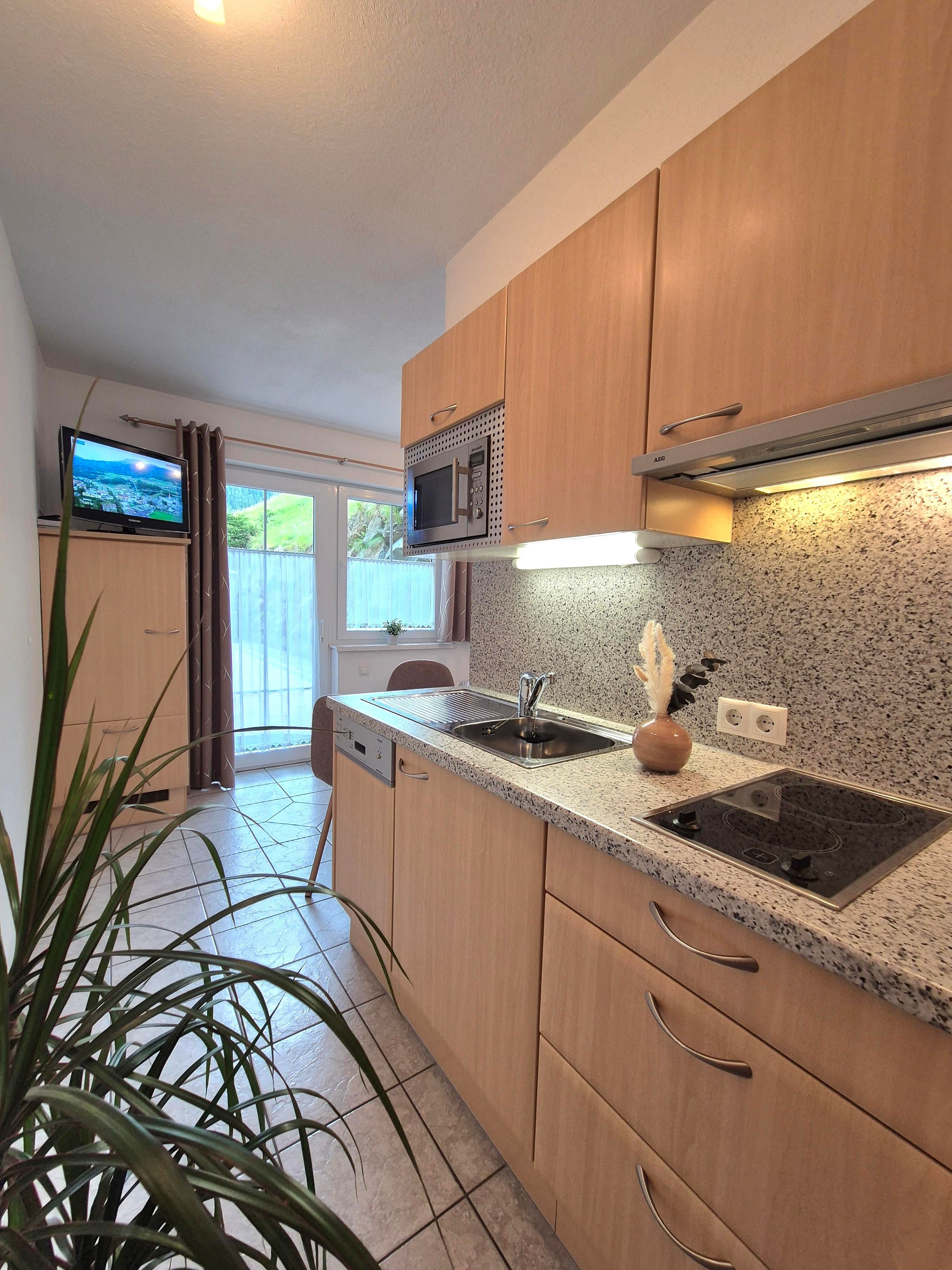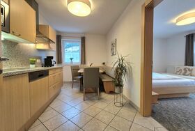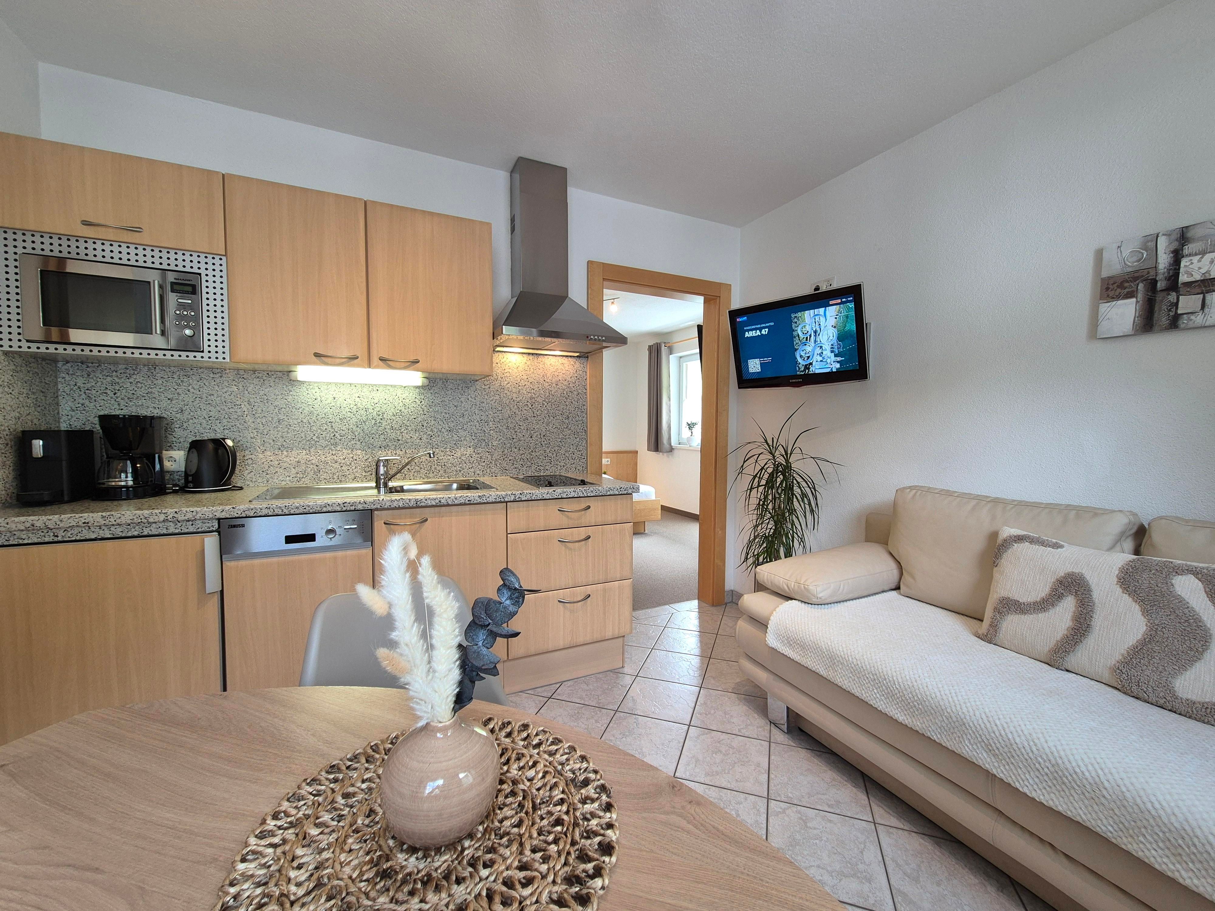 Gemütliches Appartement ca. 70 m², mit 2 Doppelzimmer jeweils mit zusätzlich ausziehbaren Schlafsofa und Kabel-Flat-TV, 1 Badezimmer mit Dusche, Föhn, getrenntes WC, voll ausgestattete Wohnküche mit gemütlicher Essecke und Kabel-Flat-TV, Südbalkon.