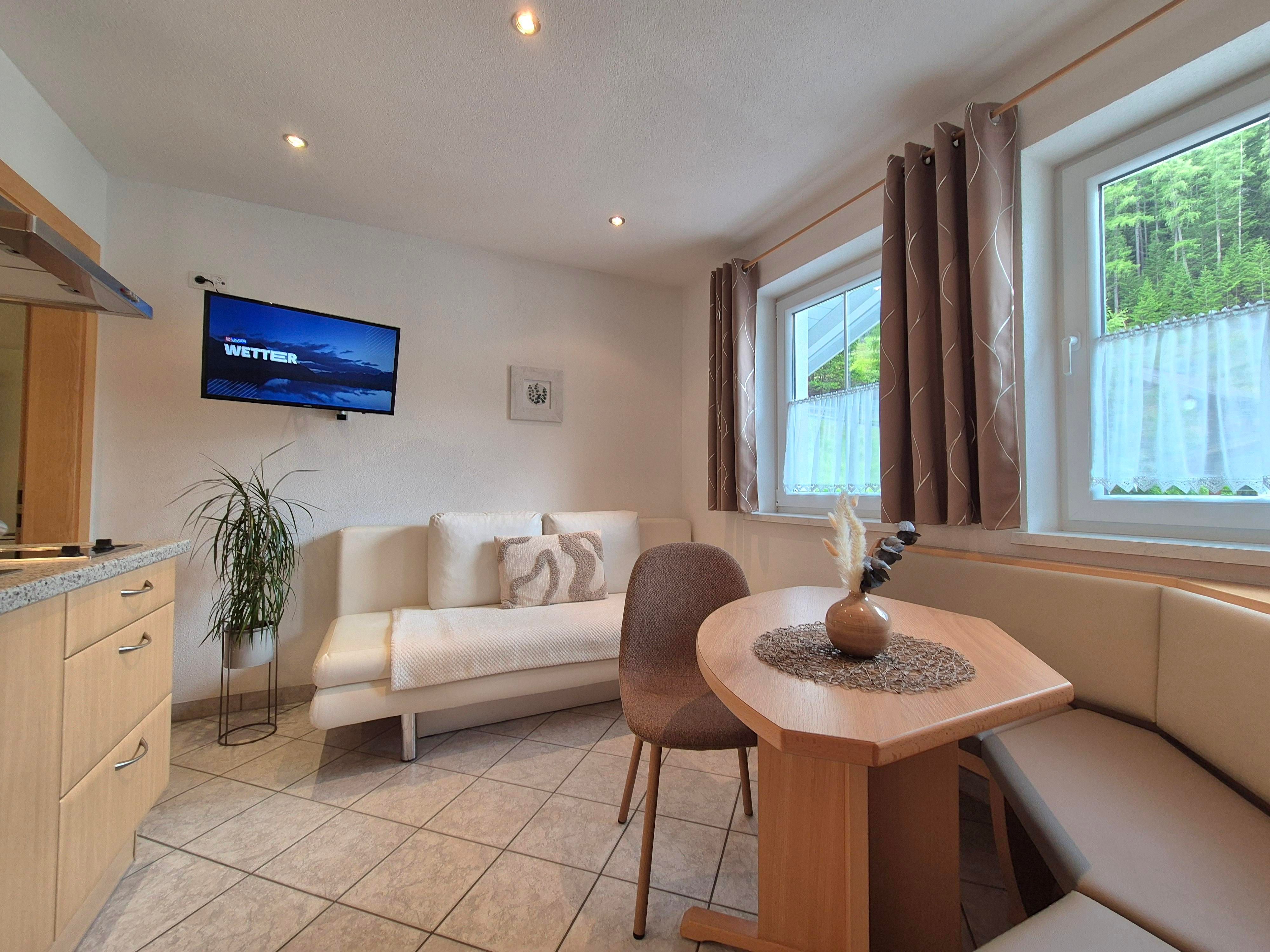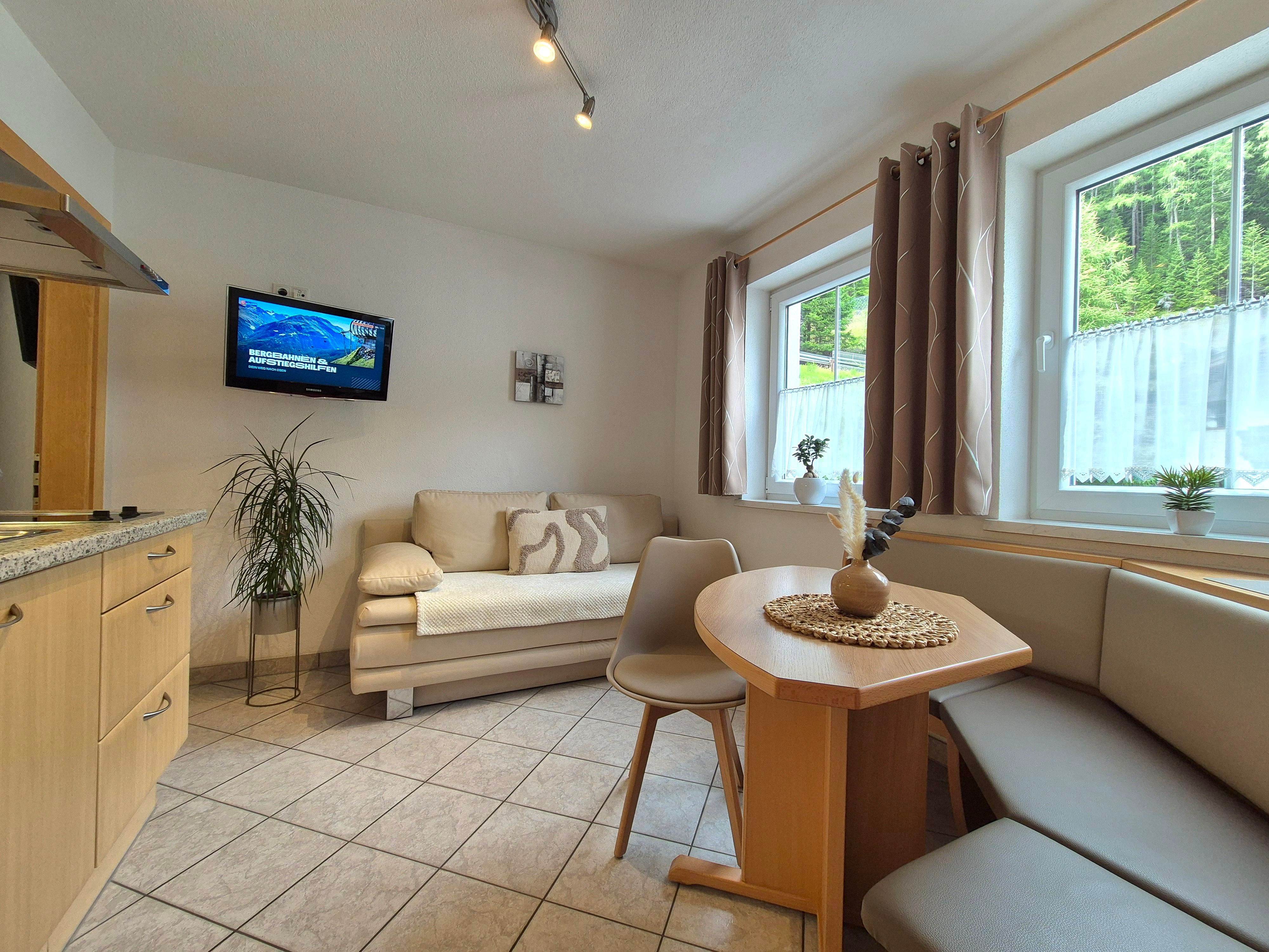 Komfortables Appartementhaus am Ortseingang in ruhiger Lage. Skibus hält im 10 Minutentakt 100m vom Haus. Giggijochbahn 1300m, Zentrum 1300m entfernt . Ausreichend Parkplatz ist vorhanden. Skiraum mit Schuhtrockner. Ein Supermarkt befindet sich in 100m Entfernung.