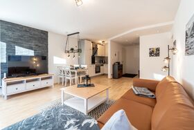 Im Wohnbereich erwarten Sie großer Flachbild-TV, HiFi-Anlage, WLAN und Zugang zur schönen und großen eigenen Terrasse. Das Schlafsofa, lässt sich mit wenigen Handgriffen in ein bequemes Bett mit einer dicken und kuscheligen Matratze verwandeln. Die moderne Einbauküche ist mit Spülmaschine, Cerankochfeld, Backofen, Kühlschrank, Senseo-Kaffeemaschine, Wasserkocher und Toaster bestens ausgestattet. Im separaten Schlafzimmer befindet sich ein großes Doppelbett, sowie mehr als genügend Stauraum im Schlafzimmerschrank. Im großen Badezimmer finden Sie neben der Dusche eine Badewanne, zwei Waschtische und ein WC.