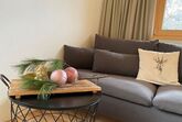 Die lichtdurchflutete Wohnung besteht aus einem Wohnbereich mit Küchenecke, gemütlicher Couch und Essgruppe, Dusche, WC, TV. In der Küche finden Sie auch eine Spülmaschine, Wasserkocher, Nespresso-Kaffeemaschine mit Kapseln und das übliche Küchengeschirr.